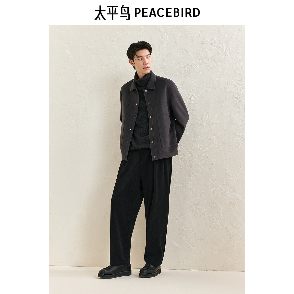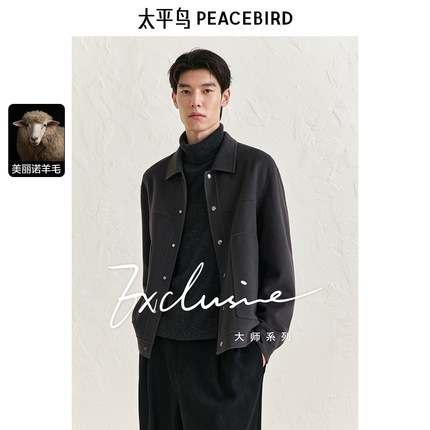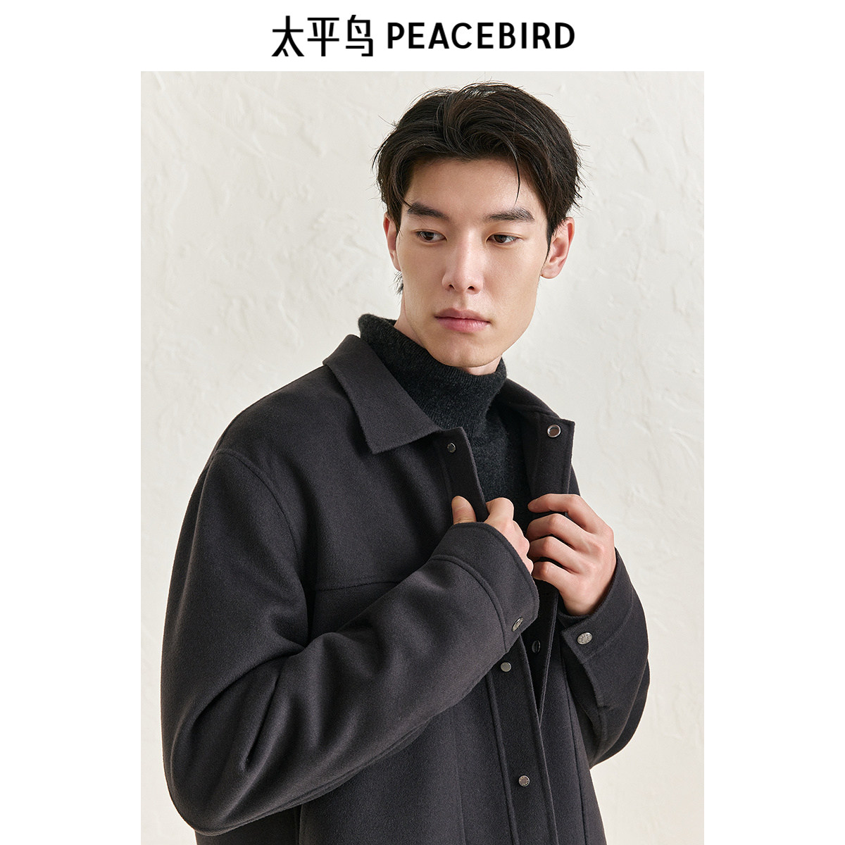 太平鸟男装双面呢夹克冬季新款羊毛行政外套商务休闲毛呢茄克
