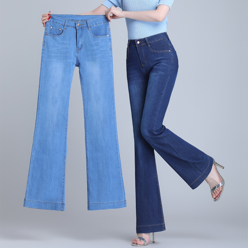 夏季薄款高腰微喇牛仔裤小个子九分修身显瘦喇叭弹力中年妈妈长裤