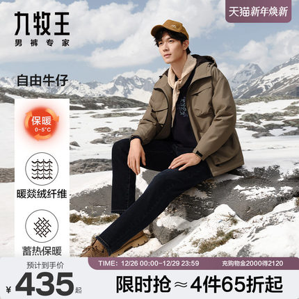 【自在牛仔暖燚绒】九牧王男士冬加绒保暖黑色高弹牛仔长裤