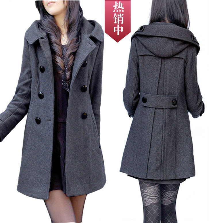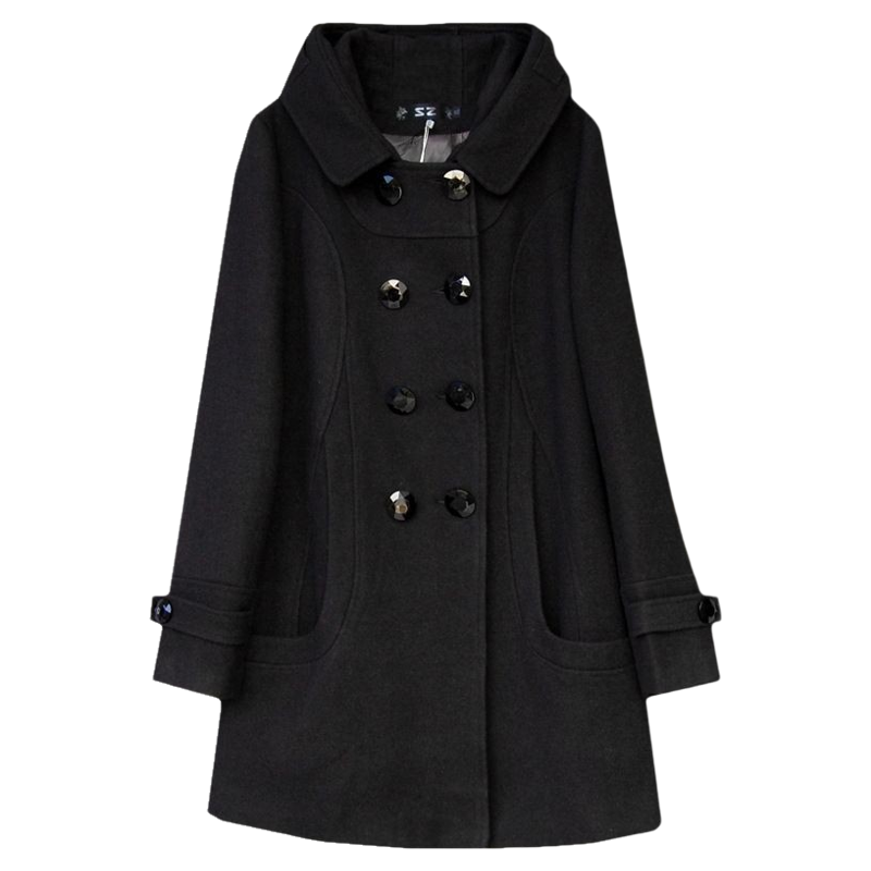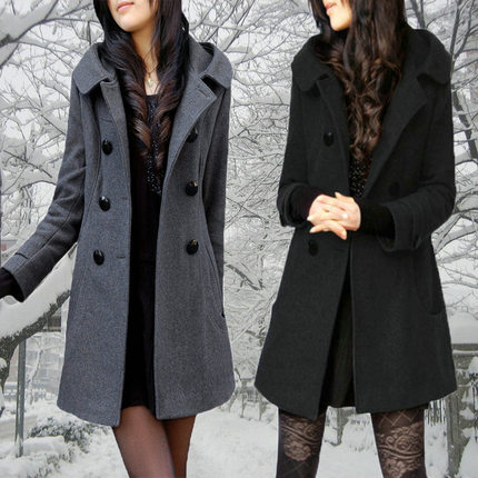 双排扣2025年秋冬款韩版大码女装保暖修身中长款连帽呢子外套大衣