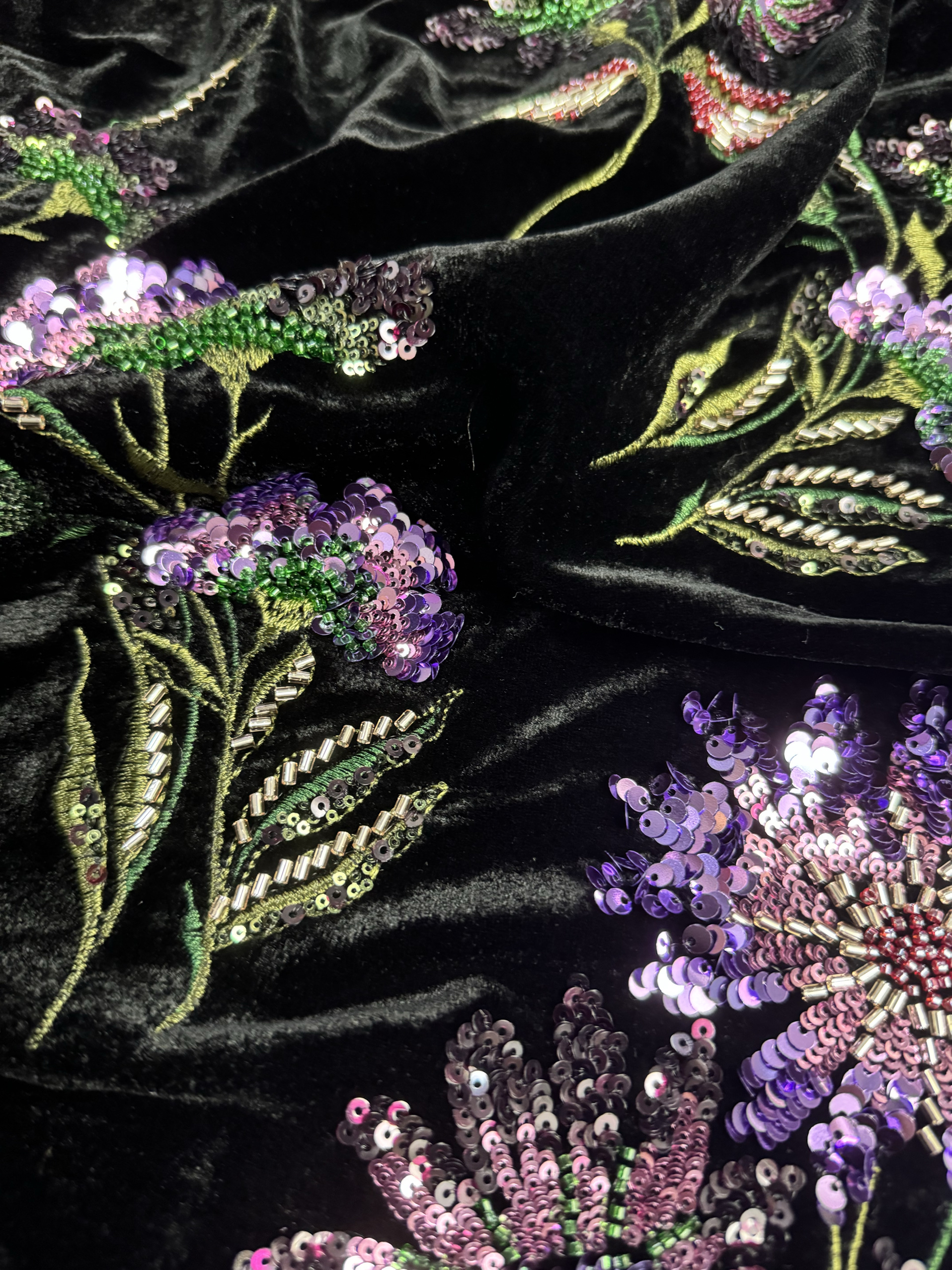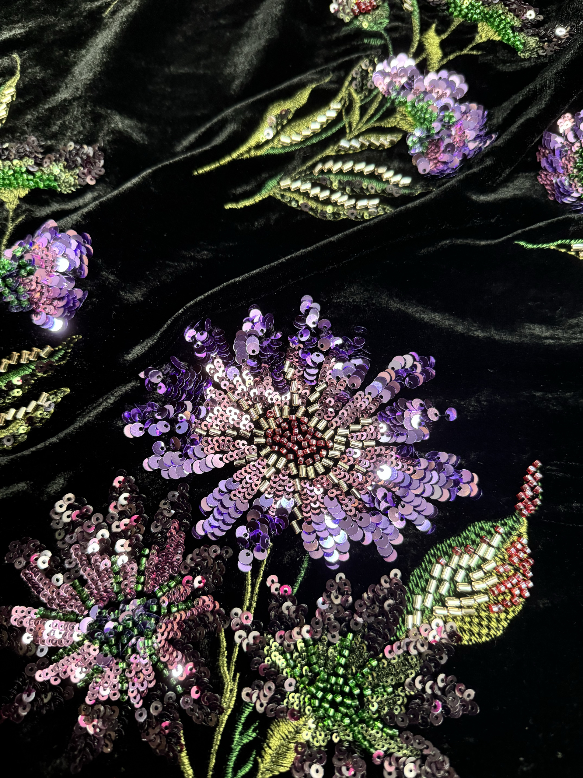 海棠依旧高定真丝丝绒重工珠管绣花面料马甲外套桑蚕丝国风布料