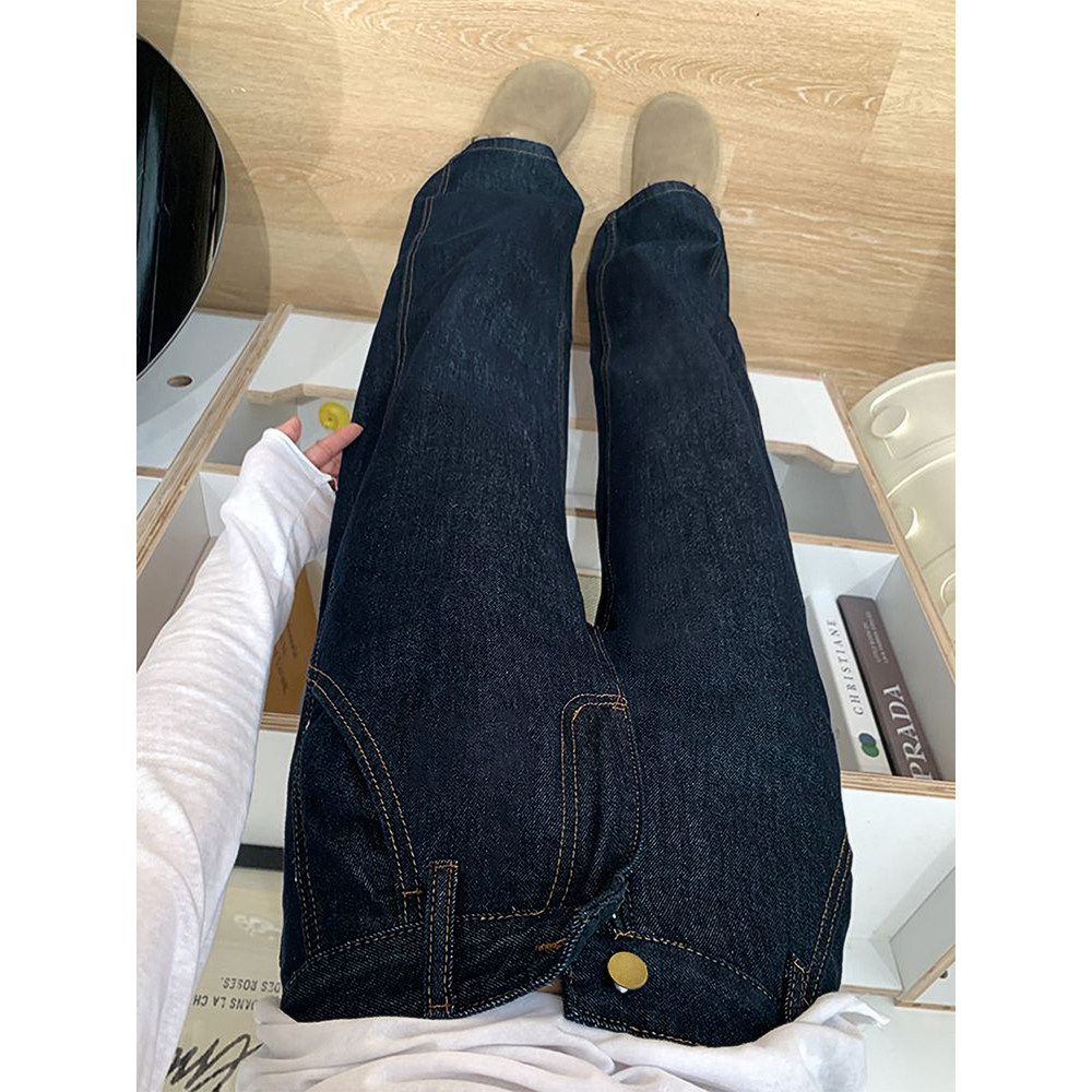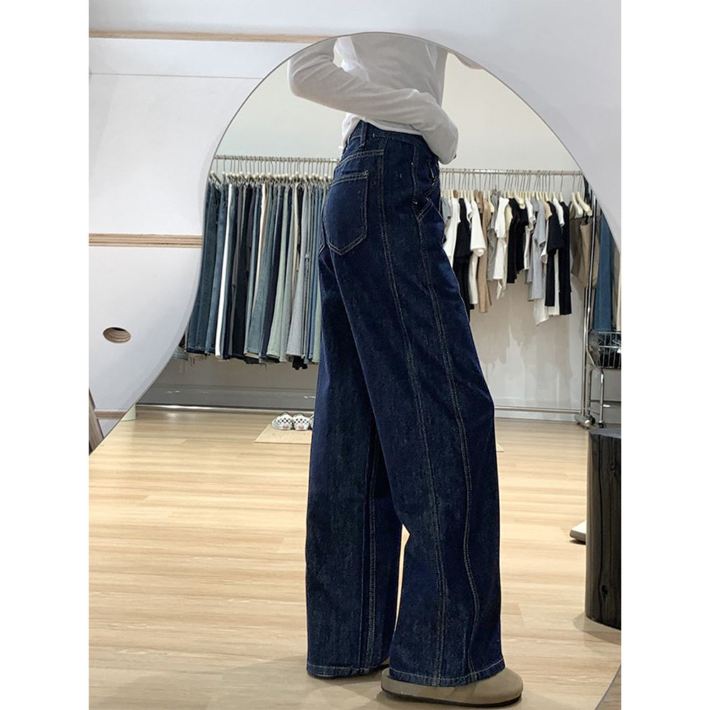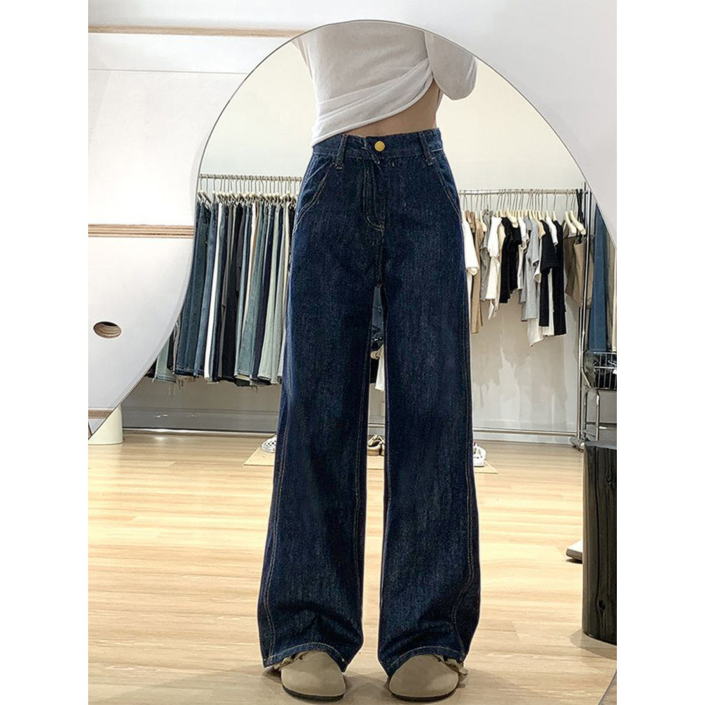 KP真维斯丹宁蓝阔腿牛仔裤女秋季高腰宽松垂感显高显瘦直筒长裤子