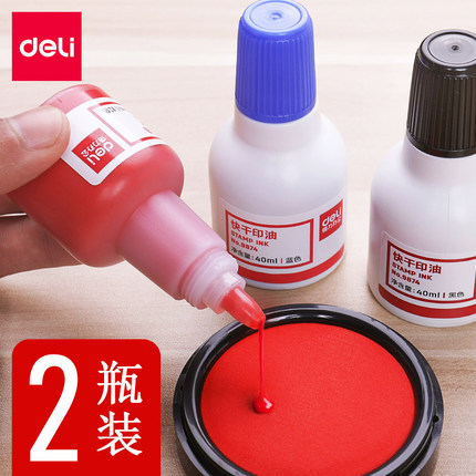 得力快干印油红色财务印章油印泥油速干印台补充墨水红印章办公非原子指甲秒干章子盖章9874公章