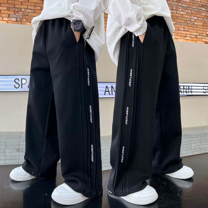 男童宽松运动裤长裤2025新款春秋大童男孩直筒卫裤两穿束脚初中生