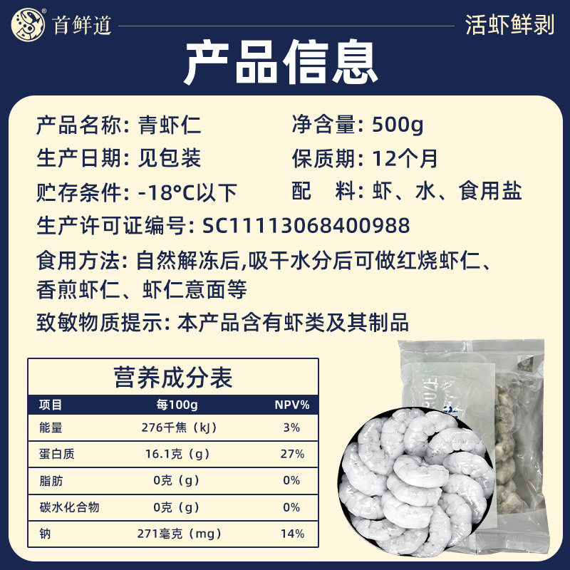首鲜道新鲜虾仁无冰去虾线活剥