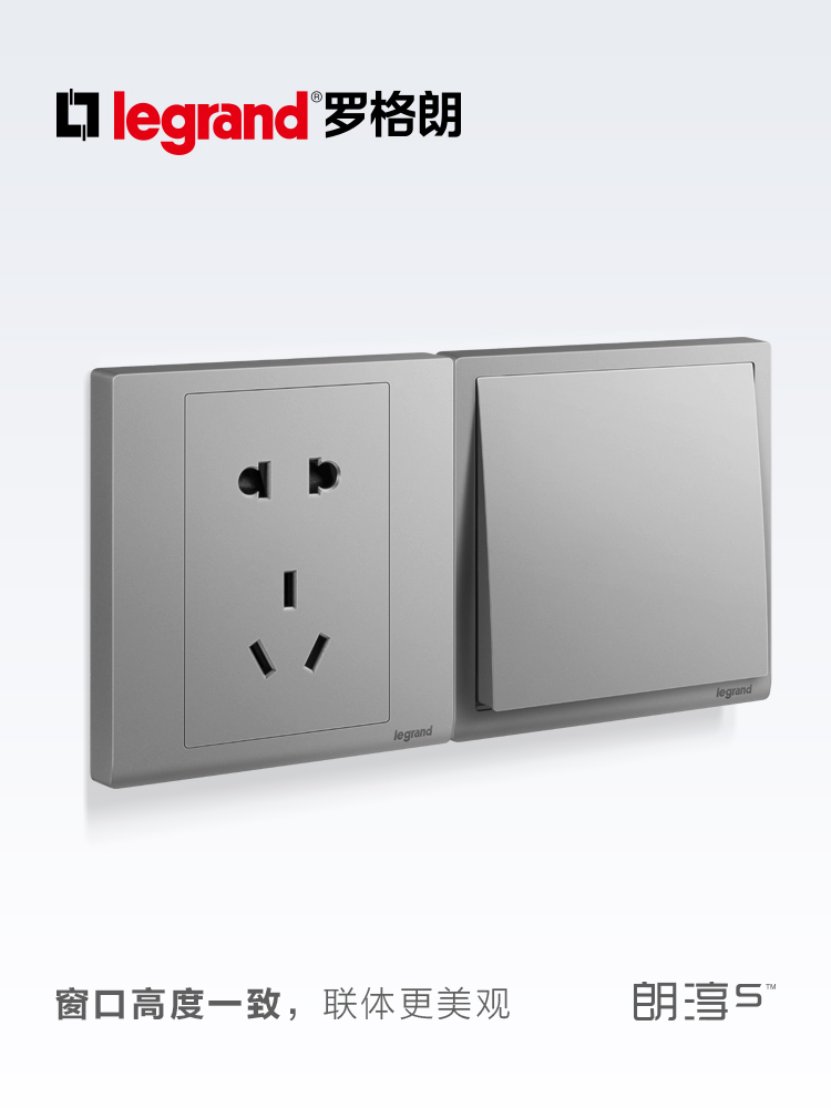 罗格朗开关插座面板朗淳S深砂银5五孔带开关三孔单开双开家用86型