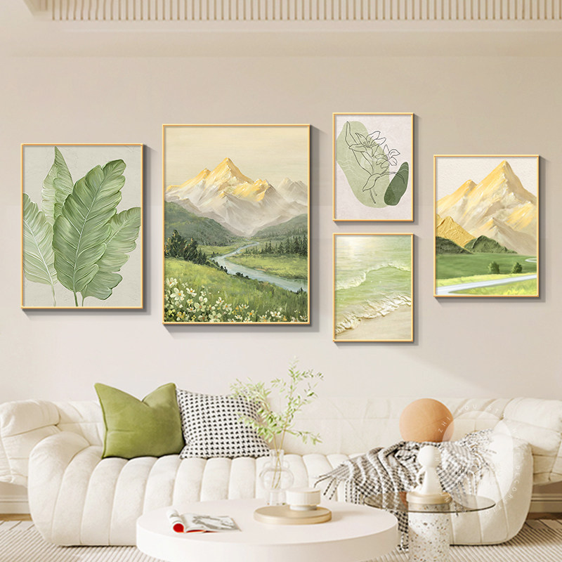 日照金山客厅装饰画简约山水风景画沙发背景墙挂画小清新组合壁画