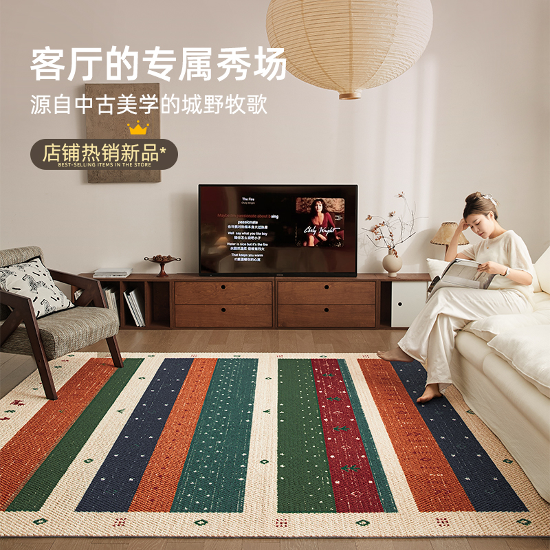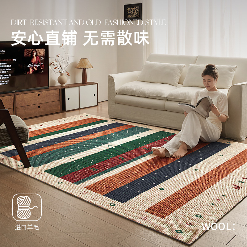 进口羊毛地毯客厅2025新款小众摩洛哥中古风艺术客厅沙发耐脏地垫
