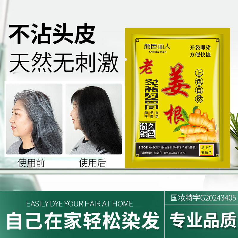 泡泡染发剂不沾头皮天然无刺激老姜染发膏植物黑发健康染发盖白发