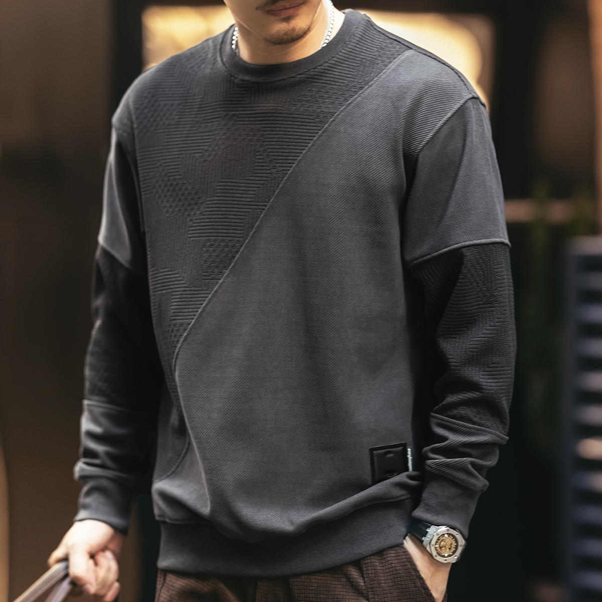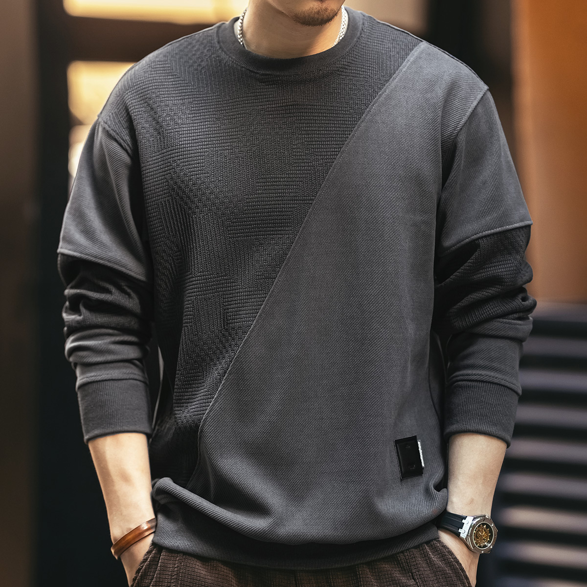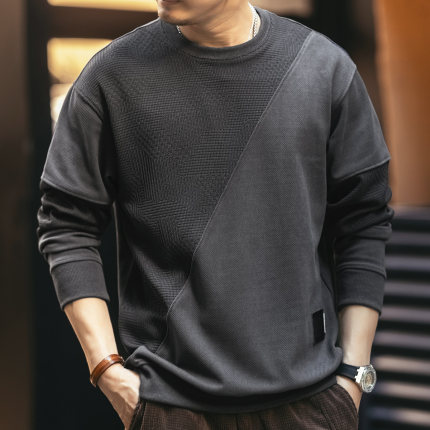 美式拼接欧棉绒男士卫衣2025秋季新款潮牌宽松大码套头男装