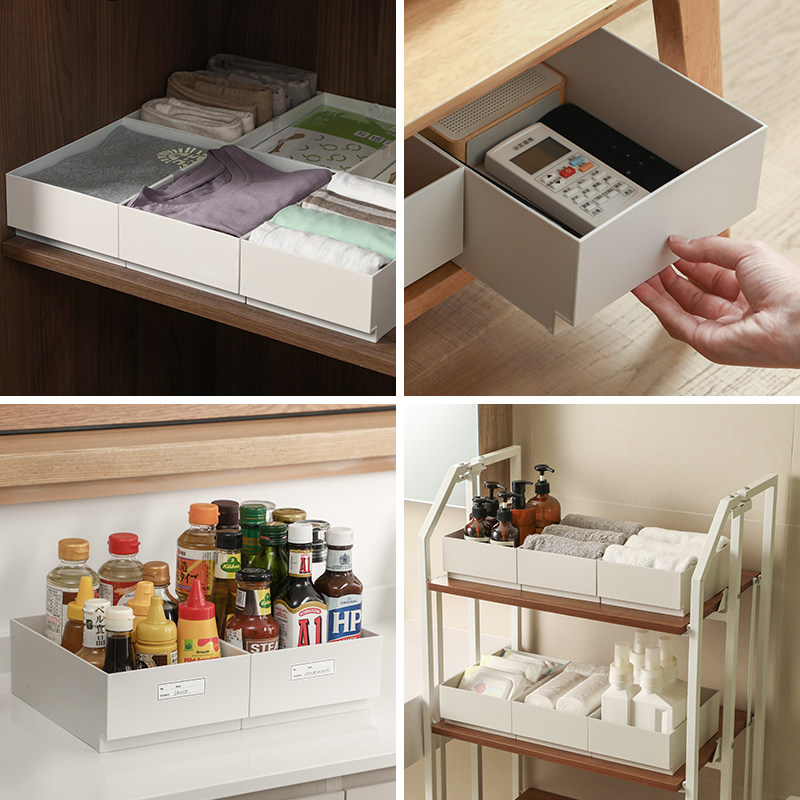 日本霜山橱柜收纳盒抽拉式化妆品杂物零食置物筐家用厨房整理盒