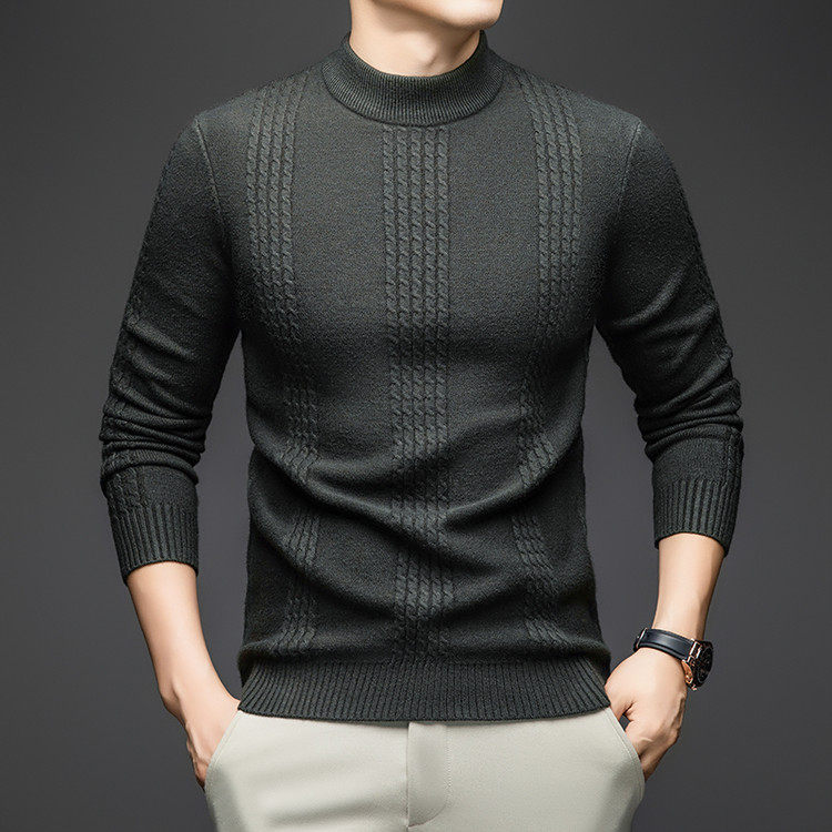 中年男士羊毛衫毛衣男2025冬季新款圆领保暖打底厚上衣针织衫