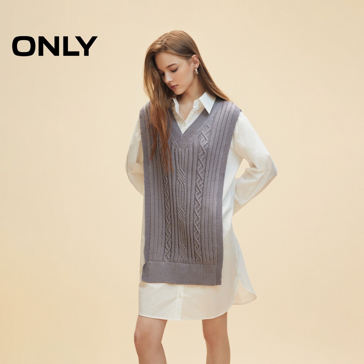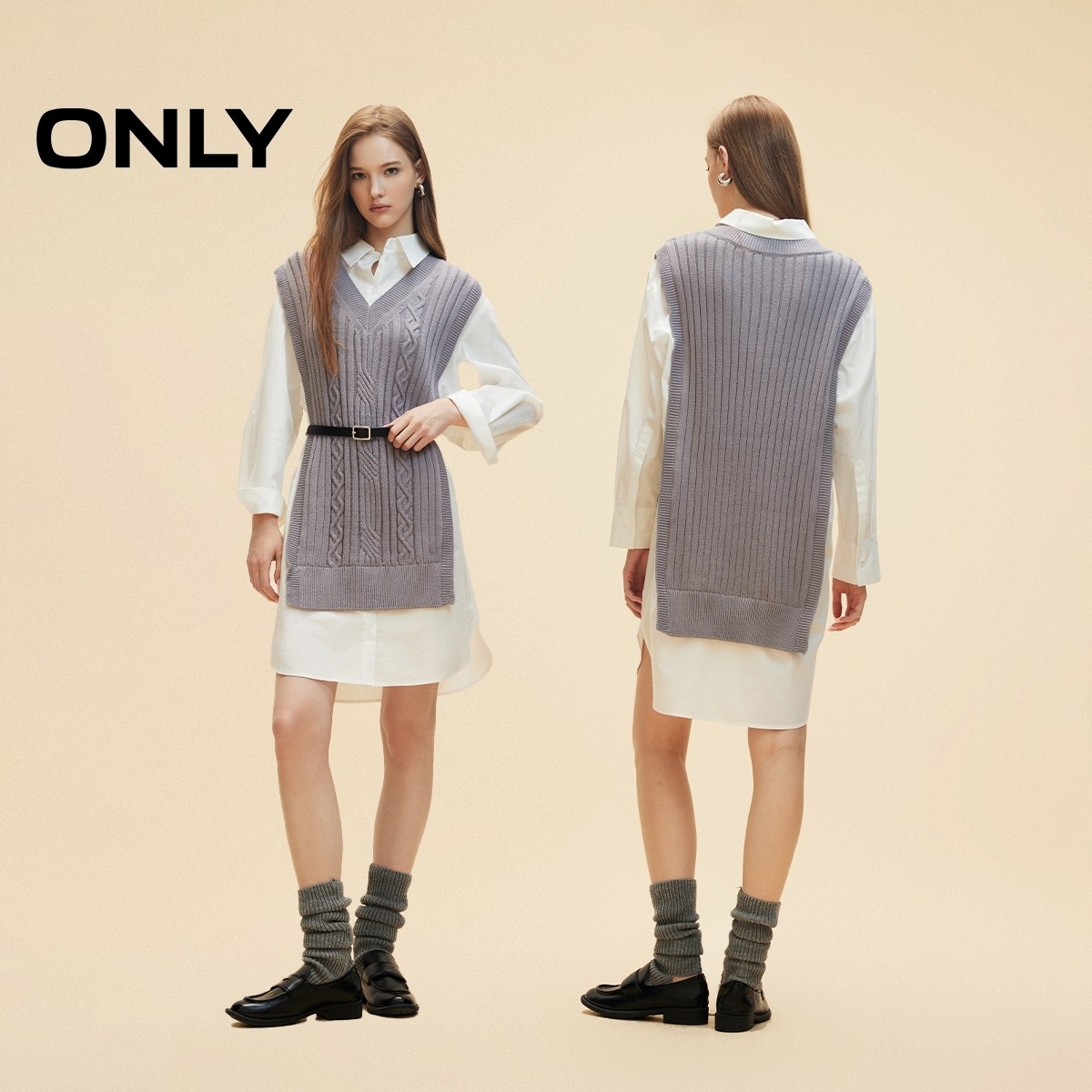 ONLY假两件衬衫裙翻领短裙连衣裙