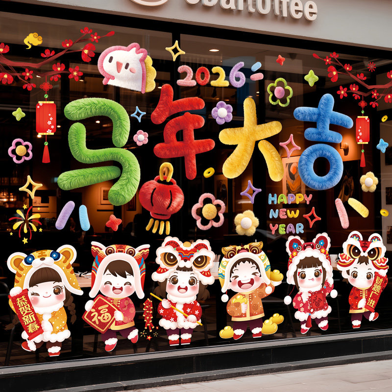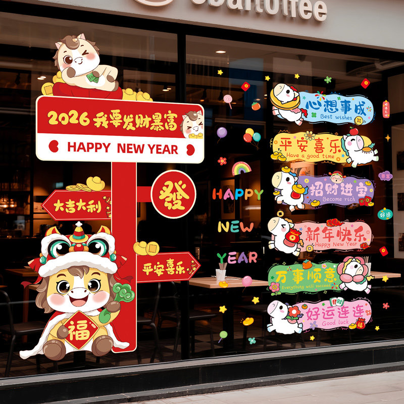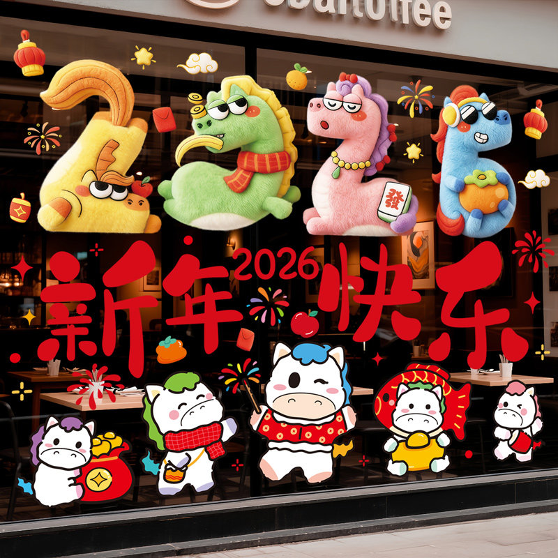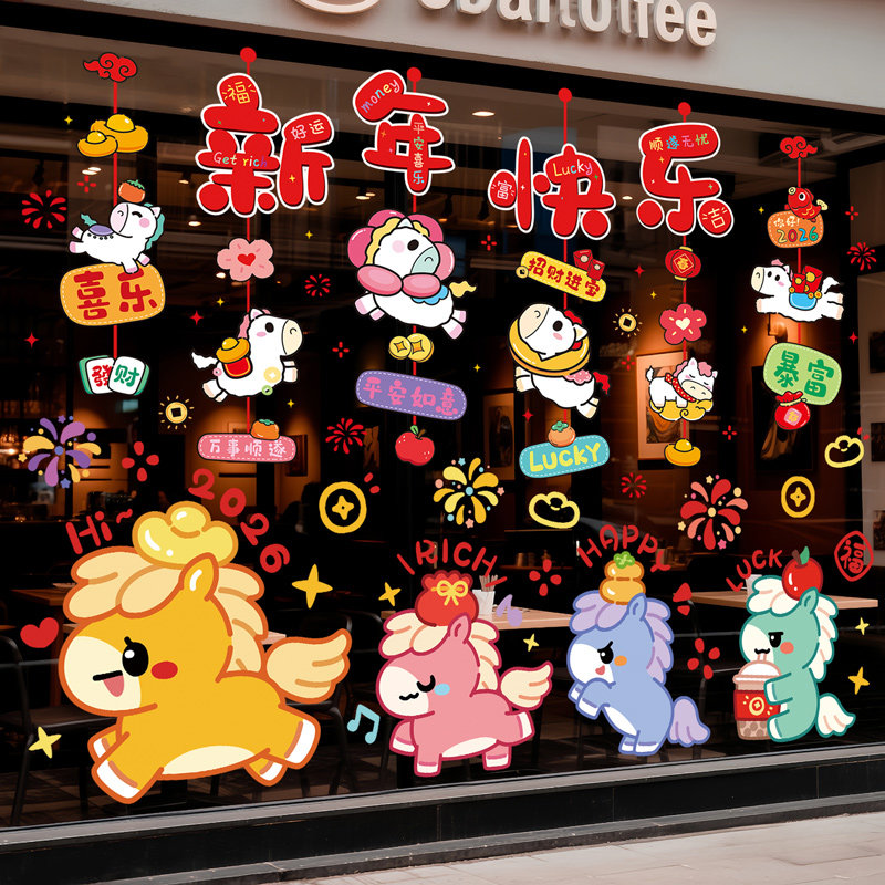 2026马年新年快乐窗花墙贴画橱窗玻璃贴纸静电窗贴装饰品场景布置