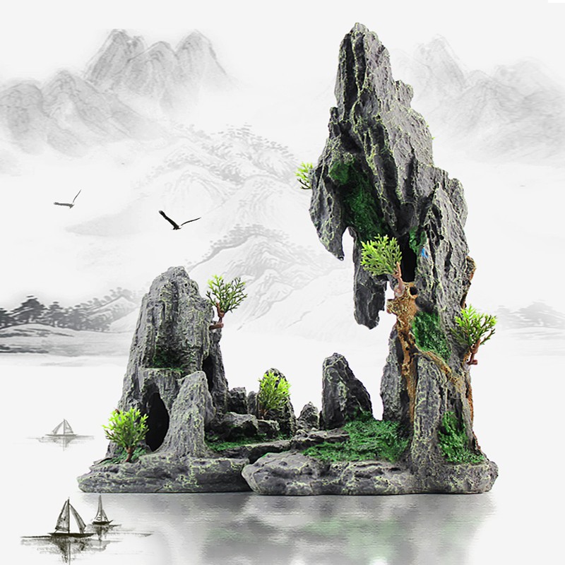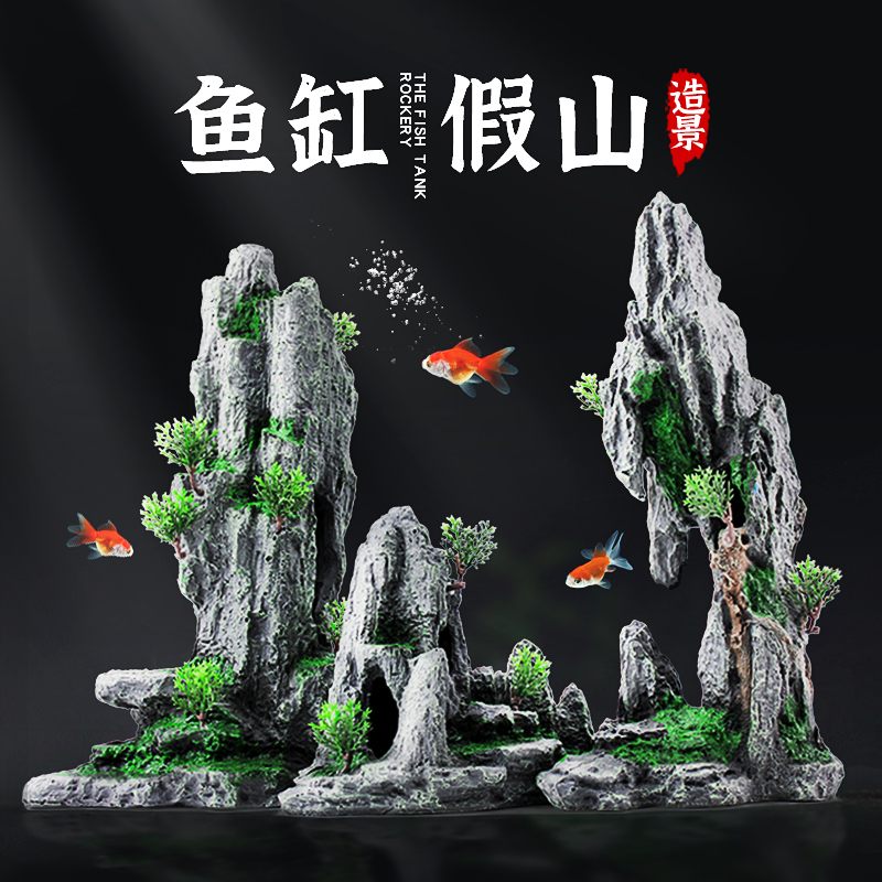 鱼缸假山造景装饰摆件水草套餐客厅水族箱金鱼缸石头大型小型创意