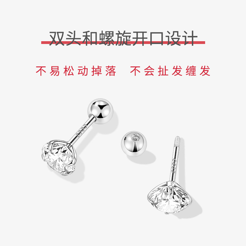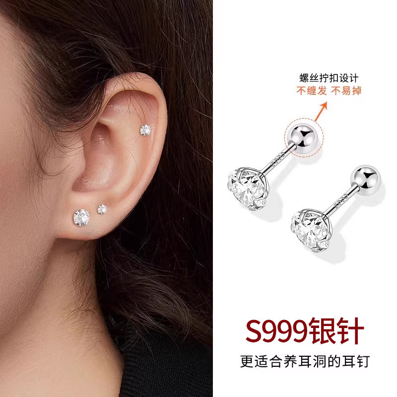 S999银针钻石耳钉女防掉螺丝拧扣耳骨钉养耳洞耳环免摘高级感耳饰