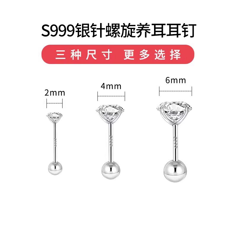 S999银针钻石耳钉螺丝拧扣防掉