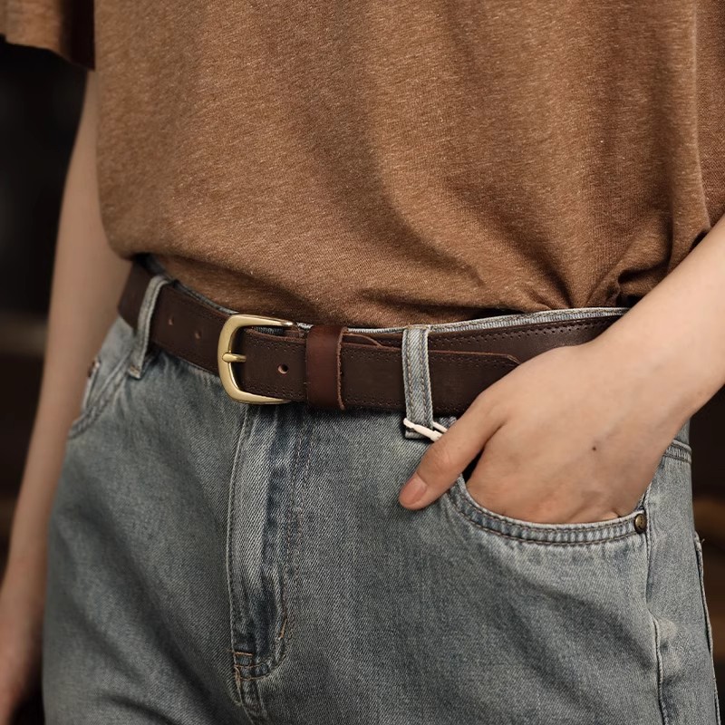 日本品质起 手工复古女士皮带 棕色宽边铜扣头层牛皮腰带时尚简约