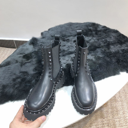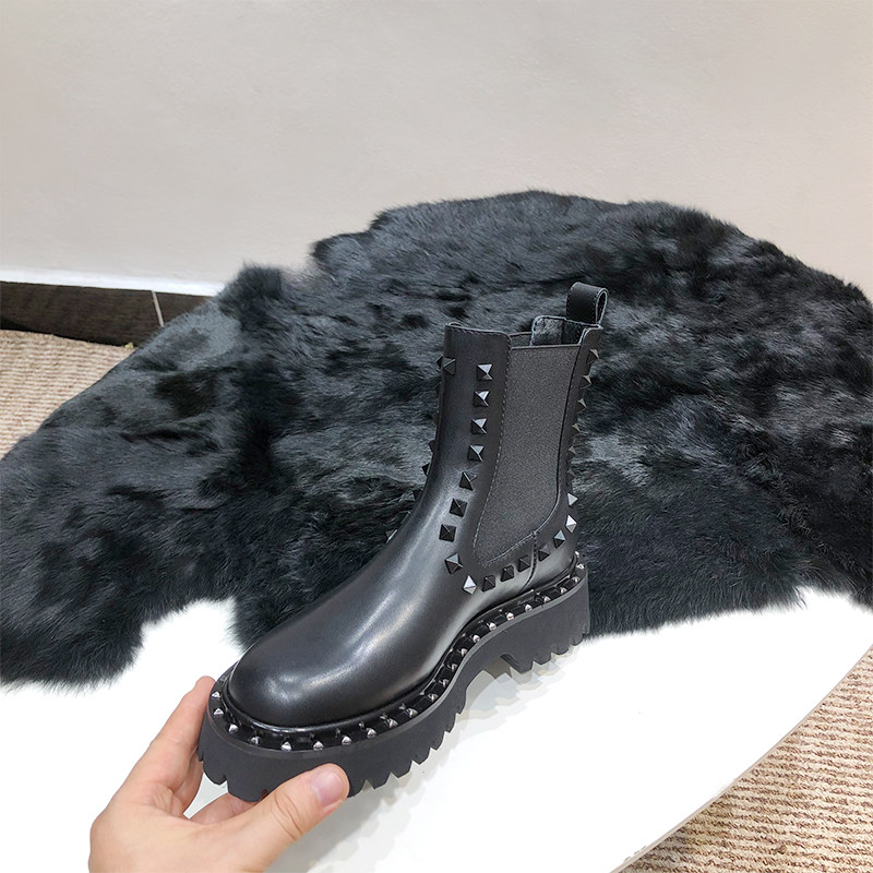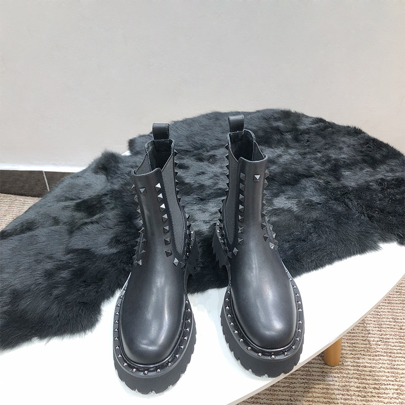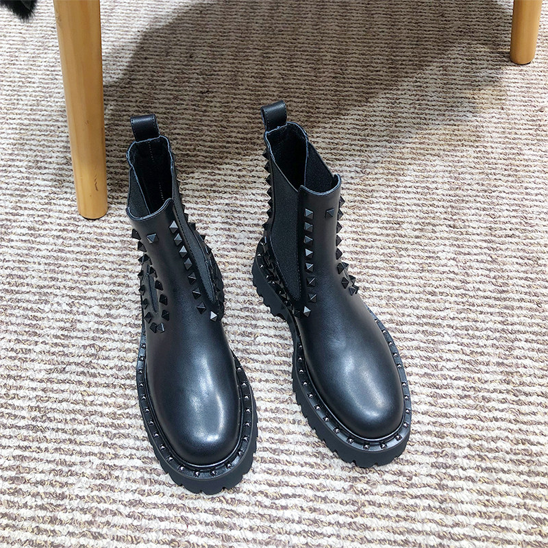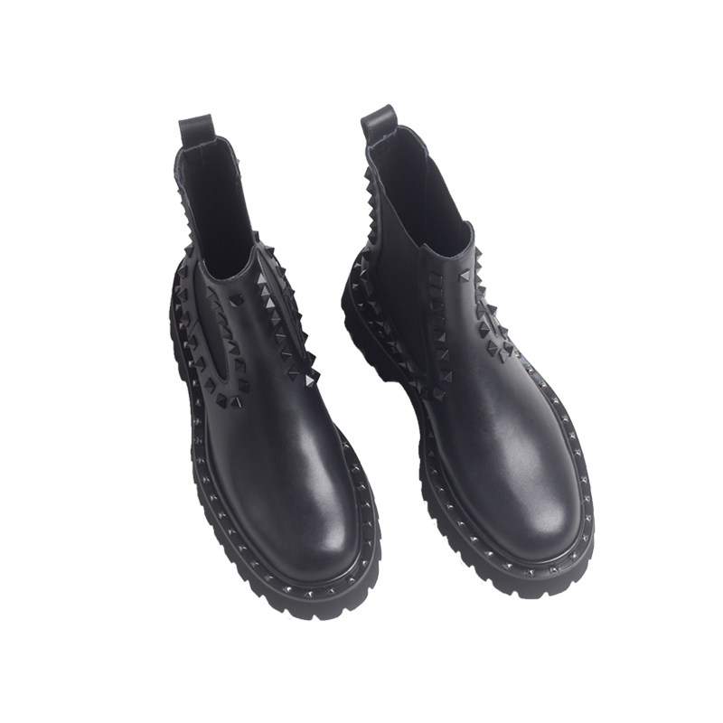 平跟羊皮马丁靴铆钉切尔西靴