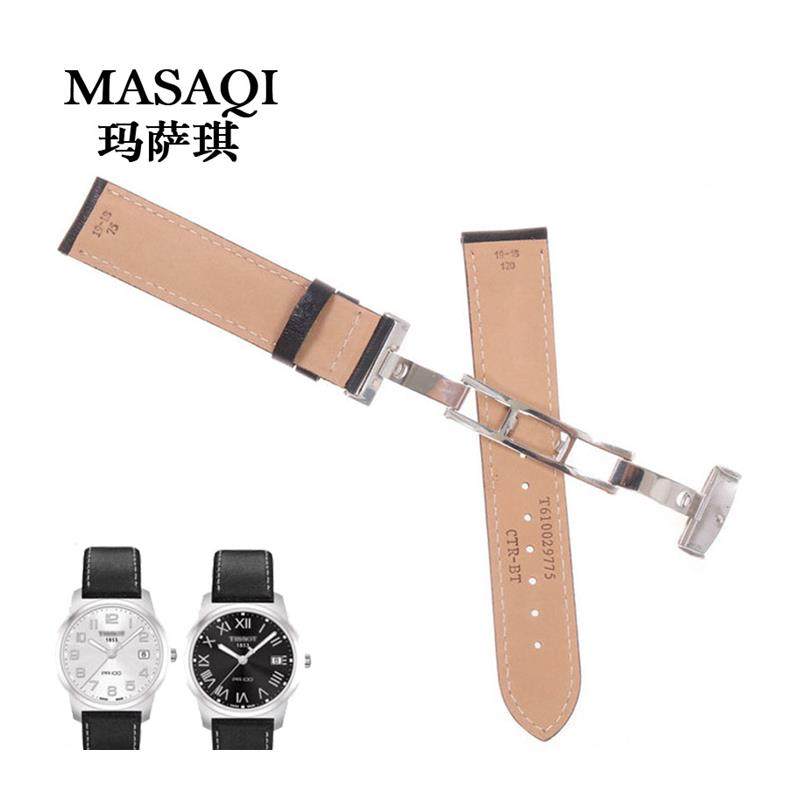 适用于天梭力洛克真皮表带T014T049T067蝴蝶扣男黑色牛皮表链19mm