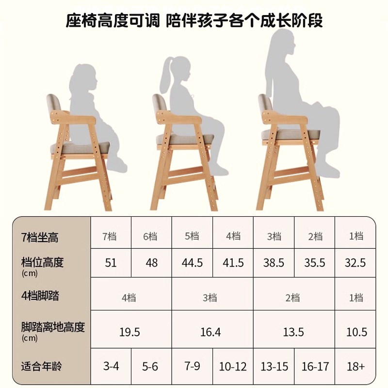 速发实木矫正坐姿用童学写椅可升降调节习字书桌椅子家儿儿童餐椅