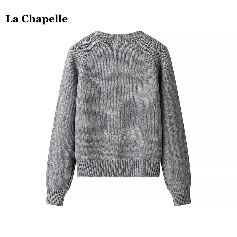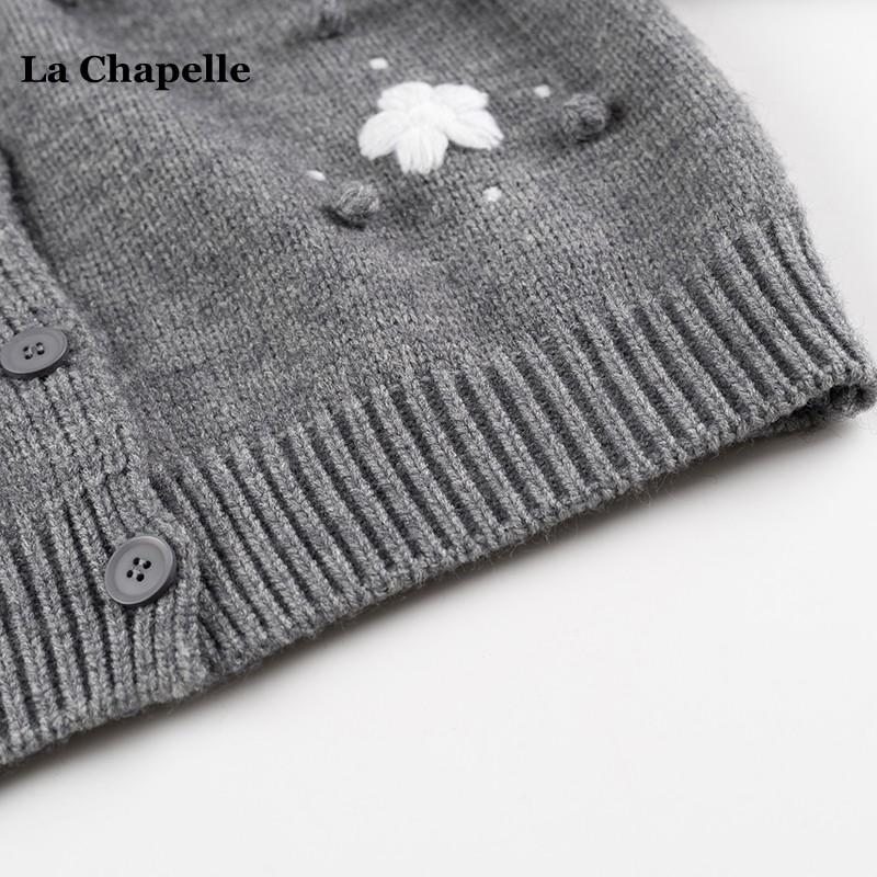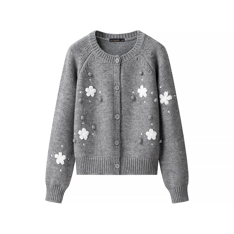 拉夏贝尔/La Chapelle立体刺绣花朵毛衣开衫女秋冬短款针织衫上衣