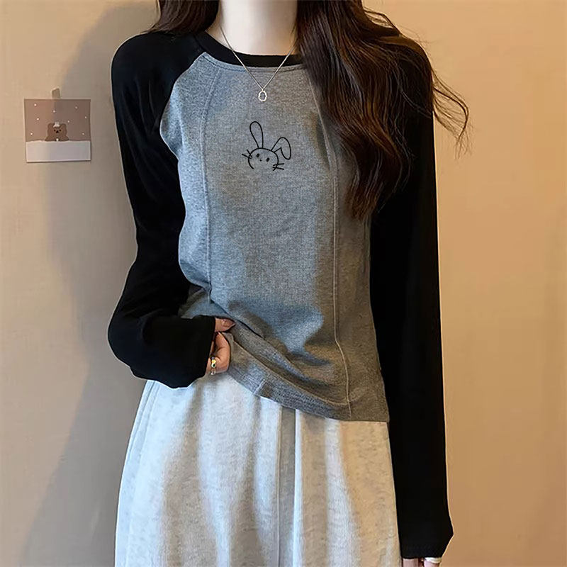 纯棉长袖T恤衫少女春秋初中高中学生外穿内搭宽松打底衫撞色上衣