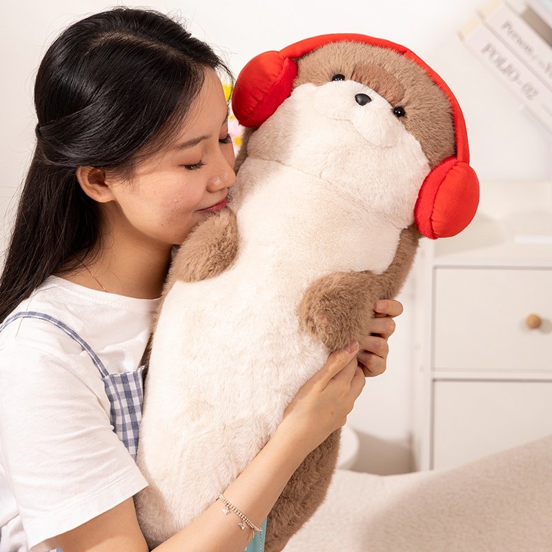 正版软萌海豹戴耳机毛绒玩具玩偶公仔安抚哄睡靠枕抱睡生日礼物女