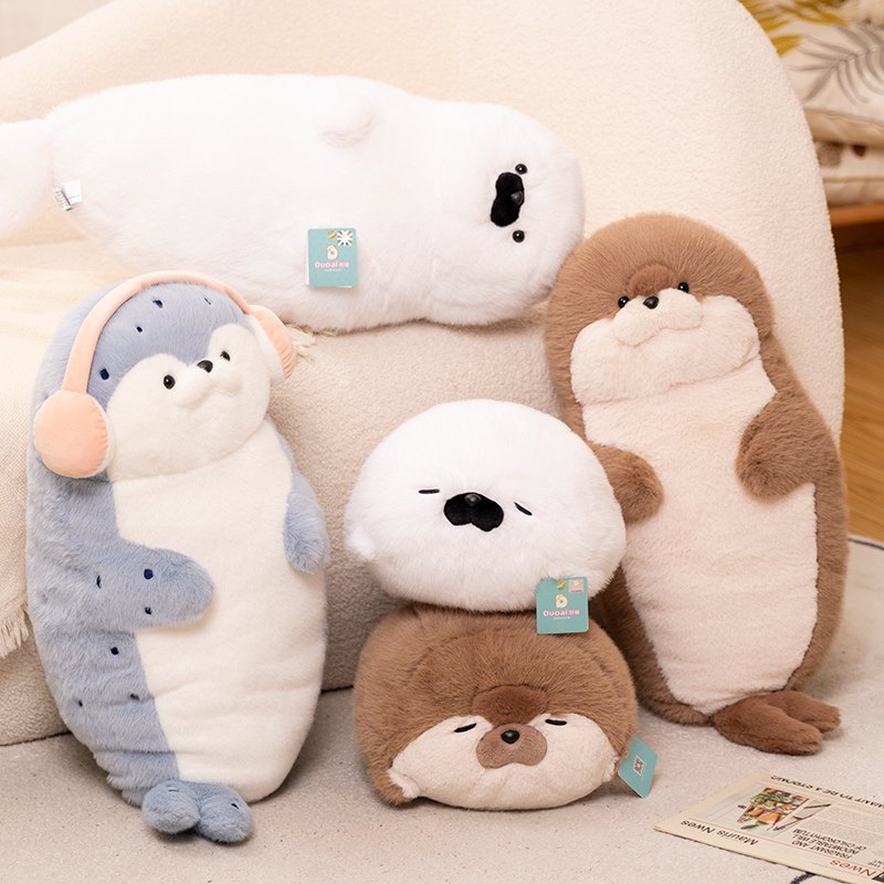 正版软萌海豹戴耳机哄睡靠枕抱睡