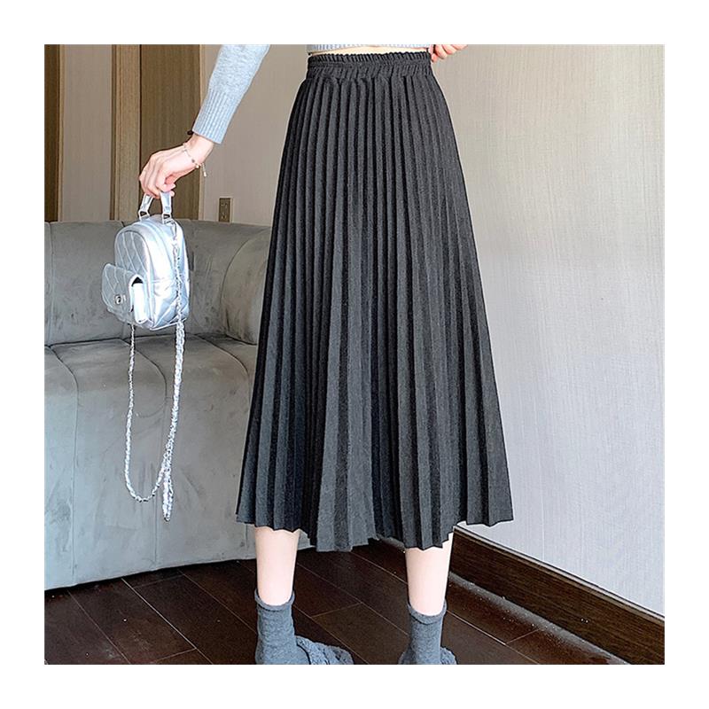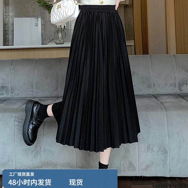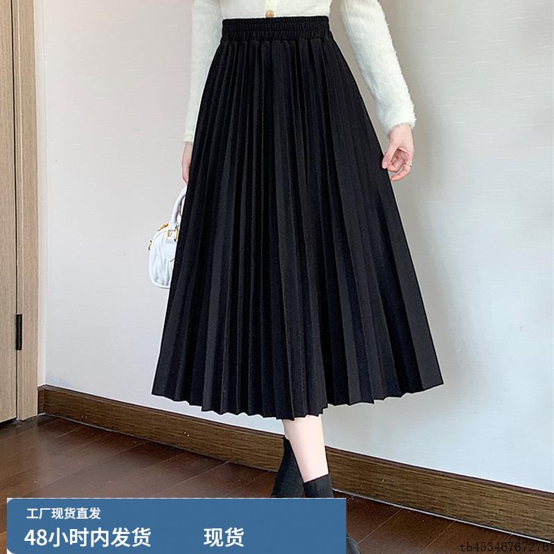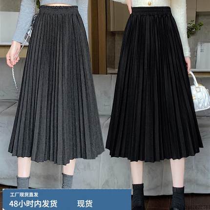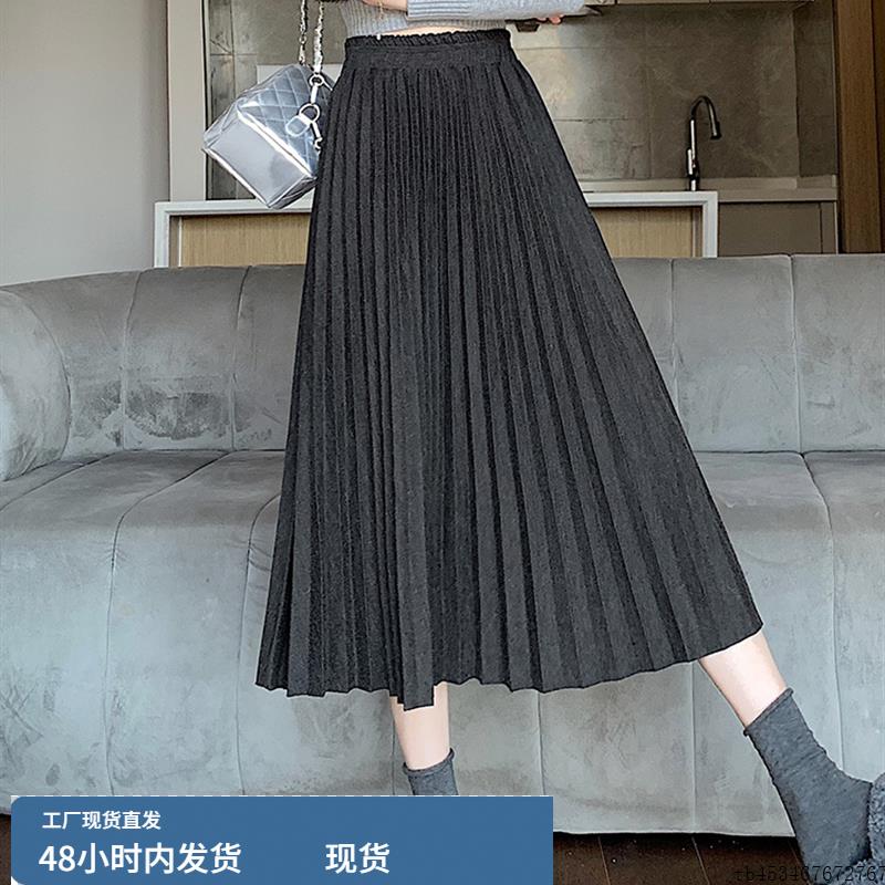 毛呢百褶半身裙女秋冬2025新款中长款高腰显瘦时尚灰色a字大摆裙