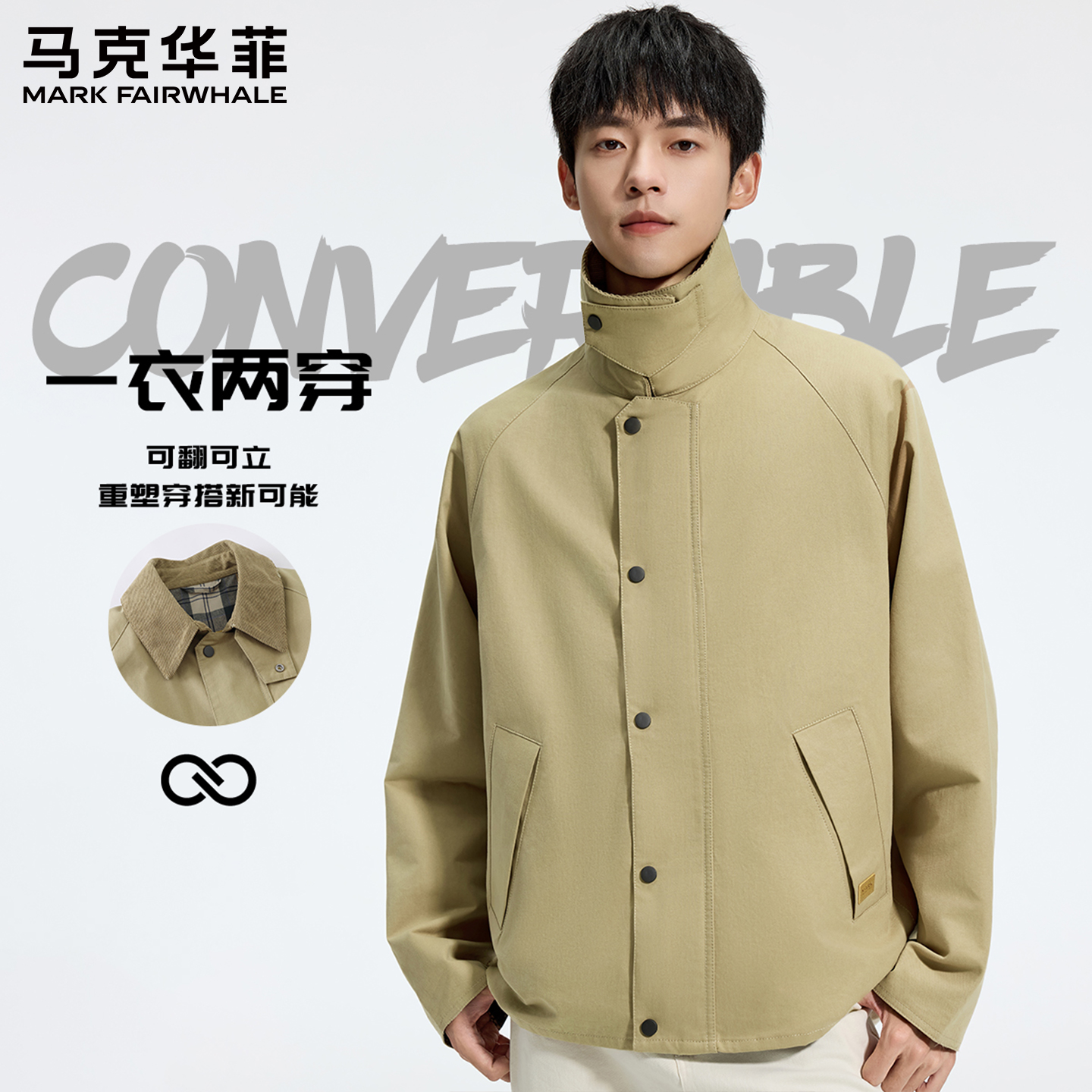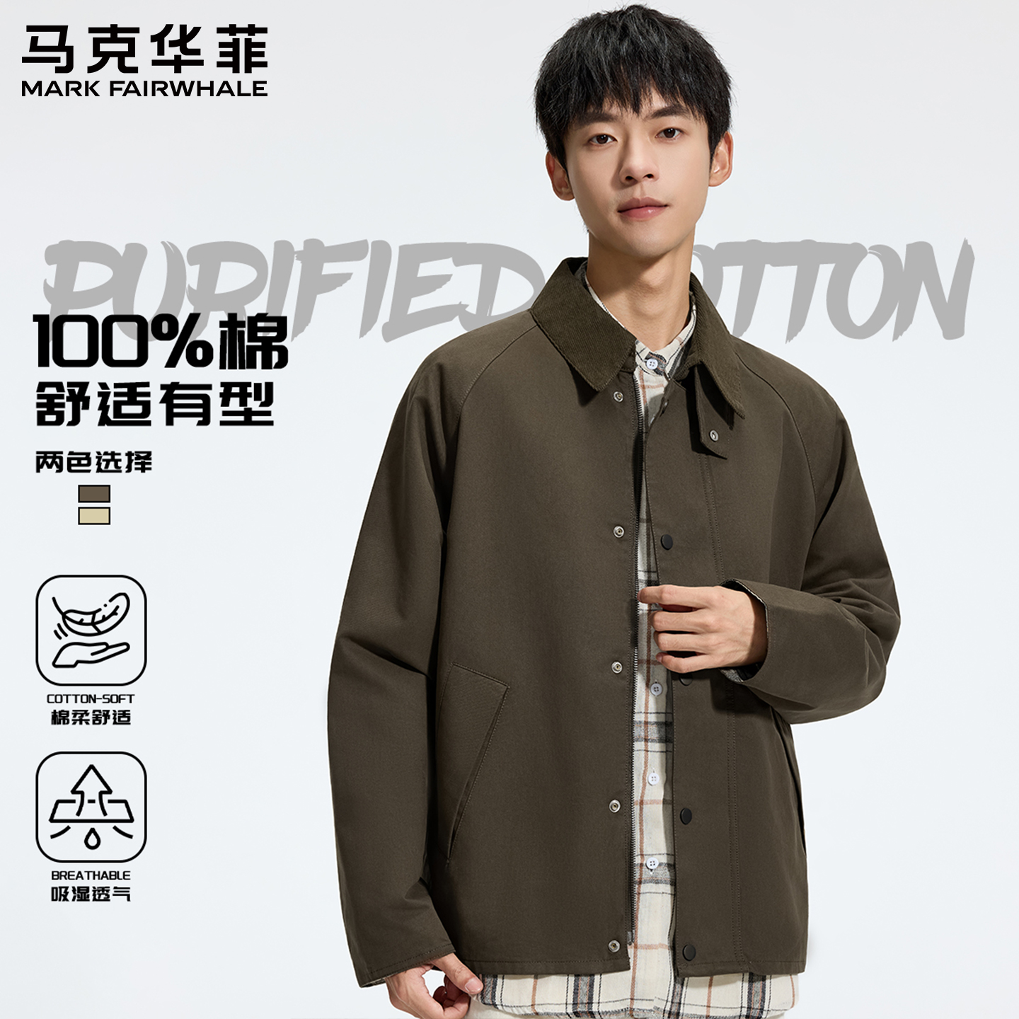 【纯棉】马克华菲2025秋季男士cleanfit翻领夹克宽松休闲保暖外套