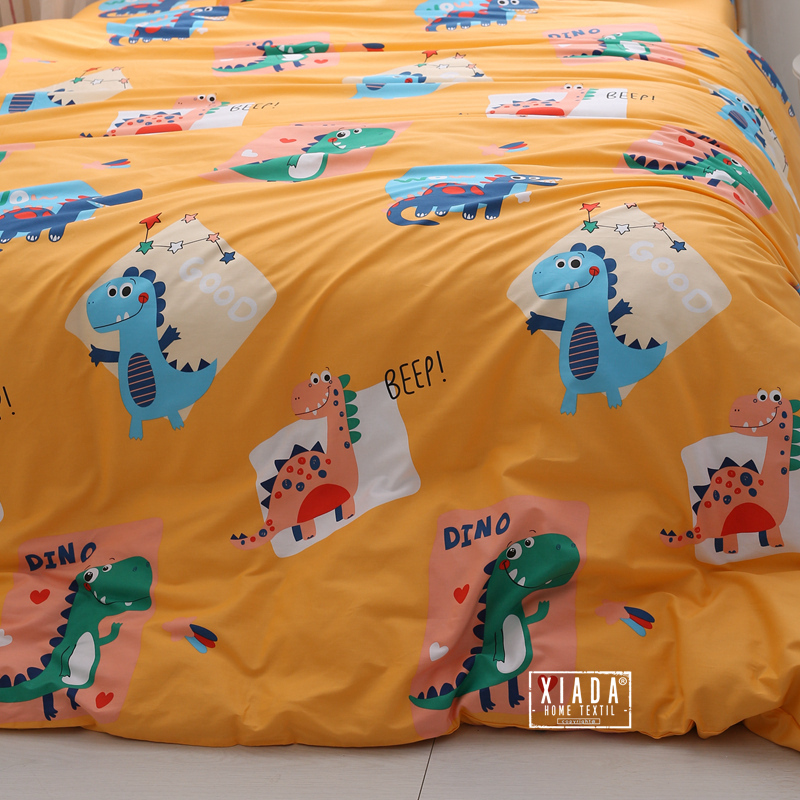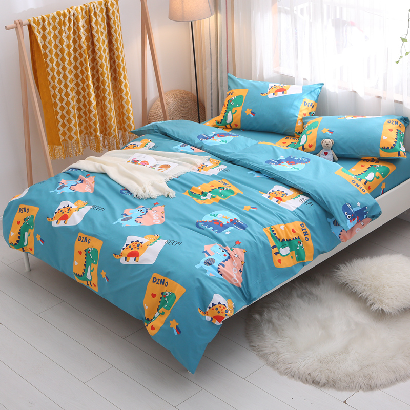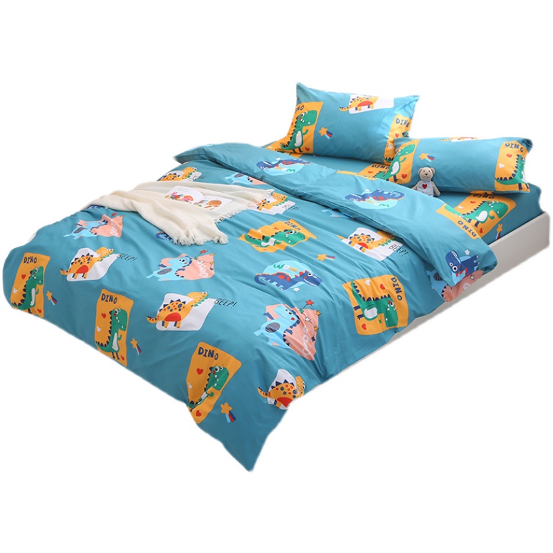 卡通泡泡恐龙床单被套四件套100全棉加厚斜纹儿童床品可裸睡