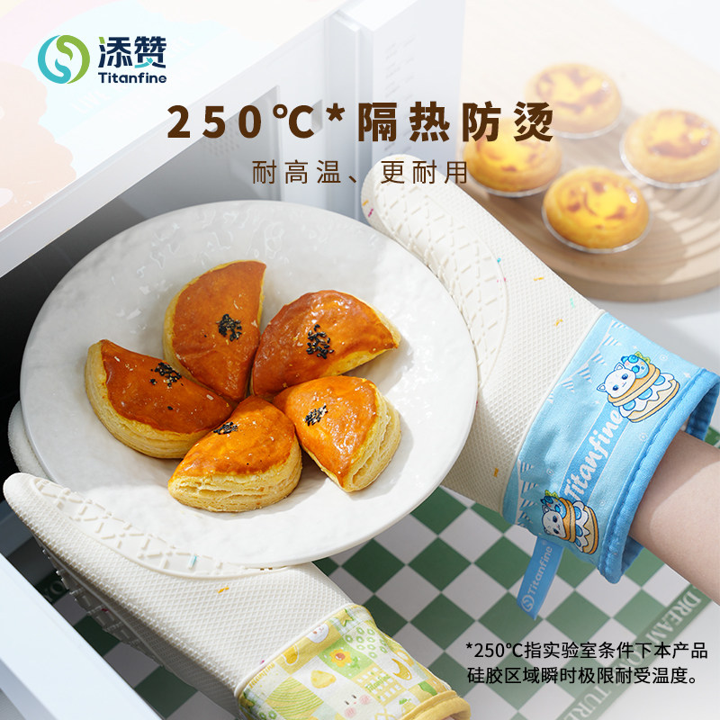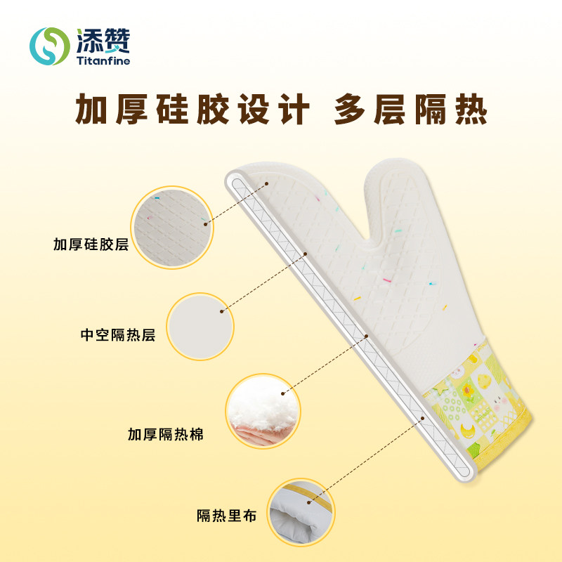 Titanfine/添赞多层隔热防烫烤箱烤盘手套蓝色黄色防滑厨房餐饮用