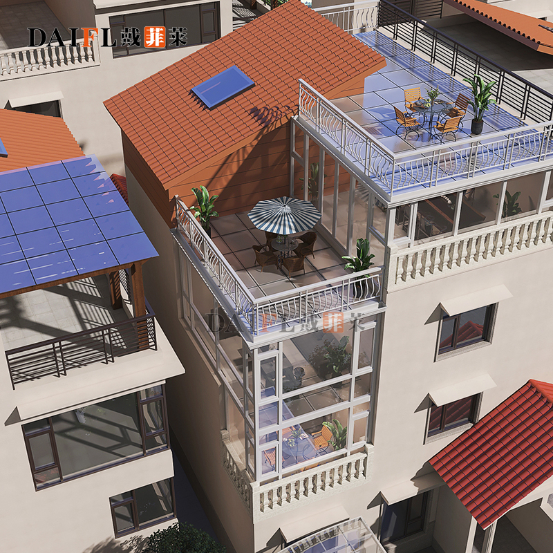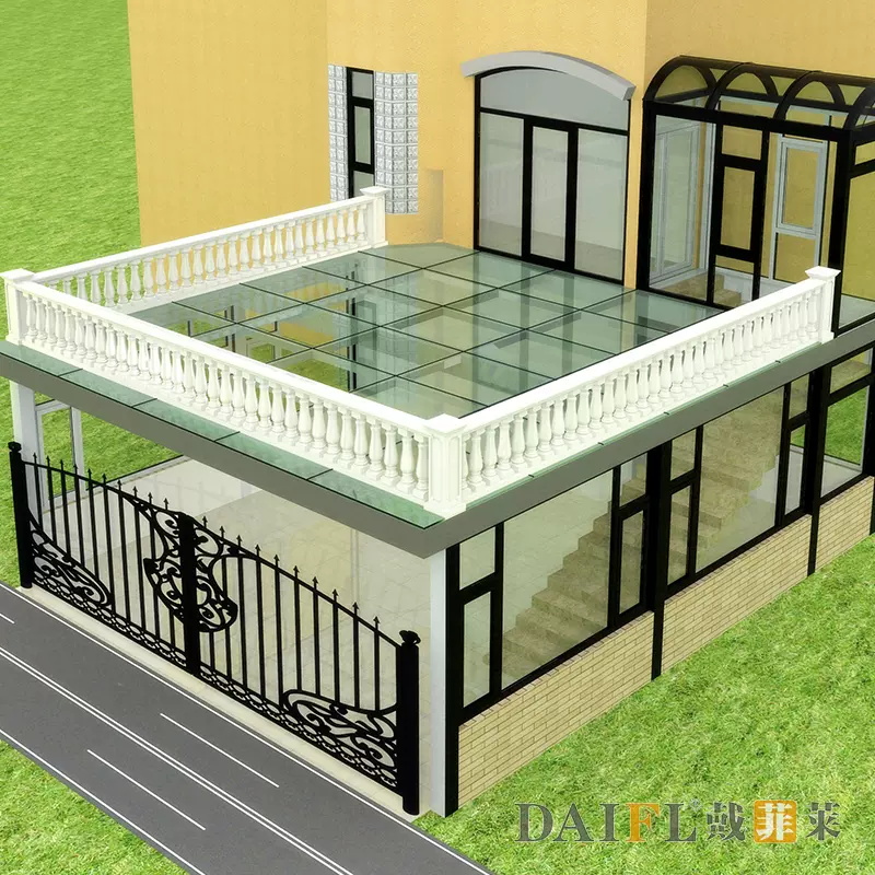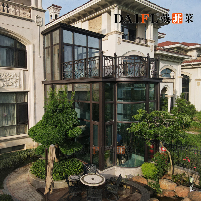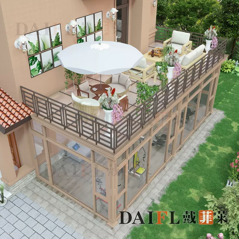 别墅复式露台平台钢结钢断桥铝合金铝包木门窗封阳台玻璃窗