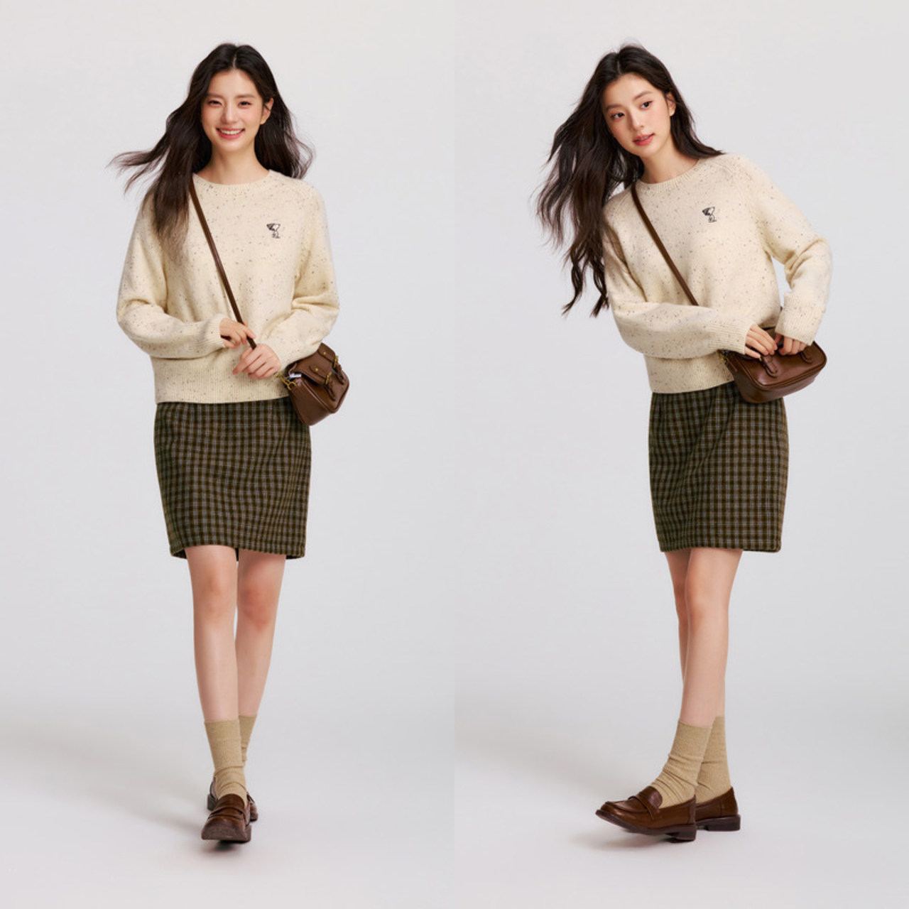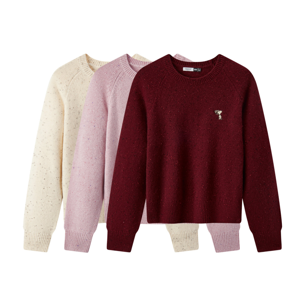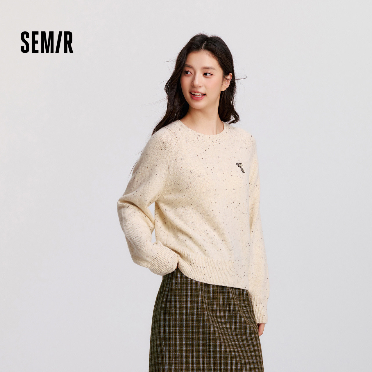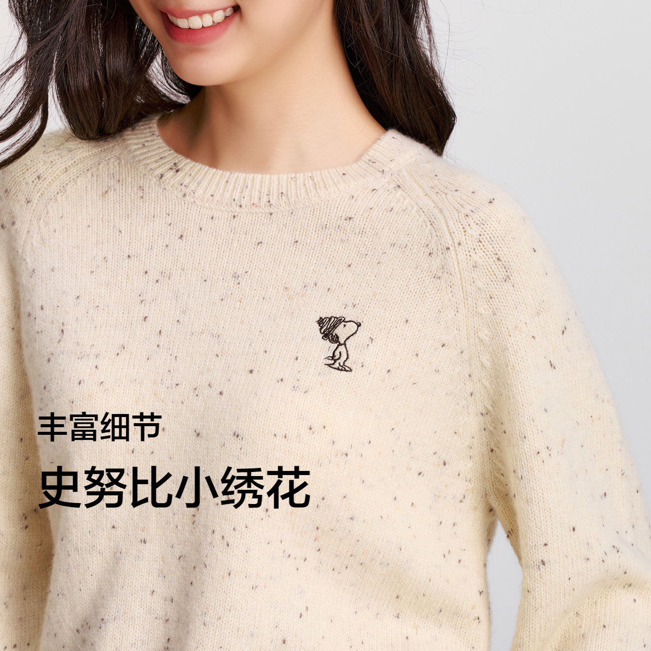 [商场同款]森马史努比系列毛衣女插肩袖绣花针织衫冬季含羊毛毛衫