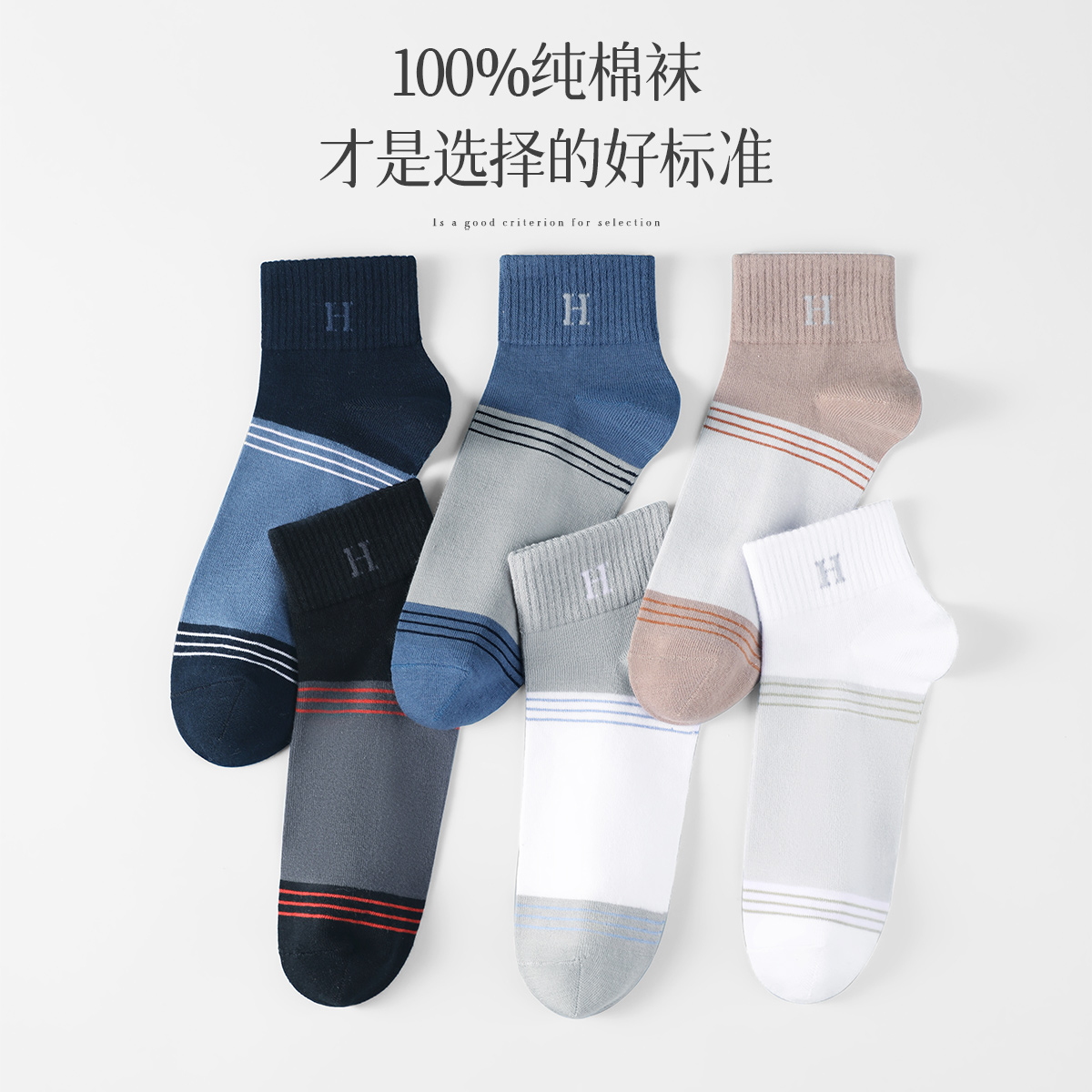 恒源祥袜子男纯棉防臭男款短袜抗菌吸汗透气全棉运动男士袜子秋季