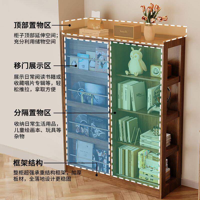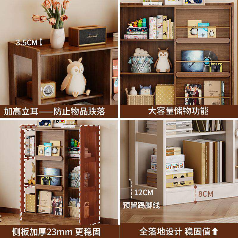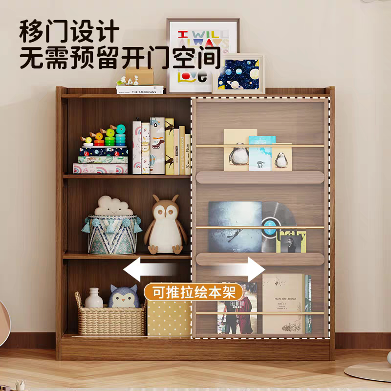 实木书架落地置物架一体靠墙置物架书房推拉门书架学生儿童绘本架
