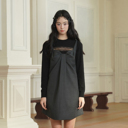 HSIYOUNWOOI羊毛立体蝴蝶结小众设计感显瘦高级感无袖背心连衣裙