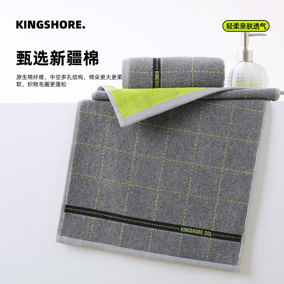 金号毛巾纯棉吸水简约格纹AB纱提花面巾家用男女洗脸擦汗毛巾