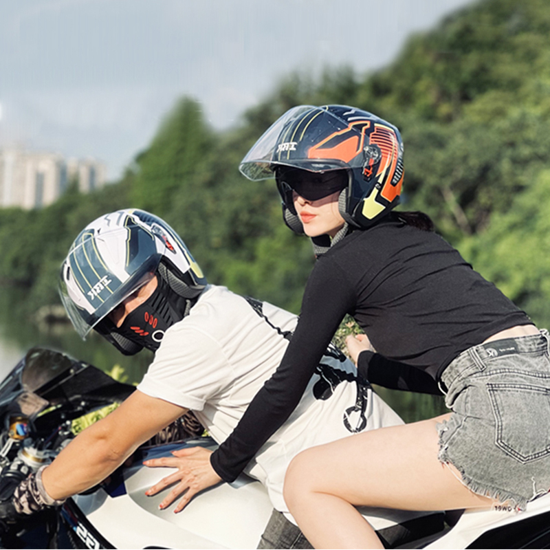 IBK电动车头盔新国标3/4盔摩托车半盔防雾骑行双镜片安全帽四季