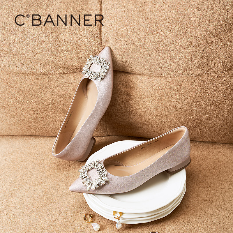 【静音系列】千百度低跟水钻婚鞋浅口单鞋女2026春季新款新娘鞋