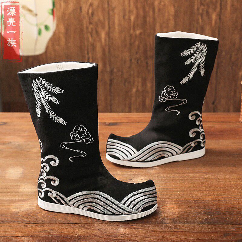 平底婚鞋古装靴子男搭配汉服鞋子明制古风原创内增高弓鞋武侠皂靴