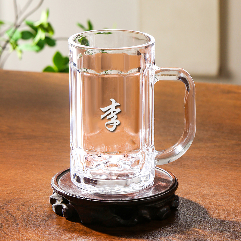 百家姓玻璃杯家用加厚耐热大容量带把手喝水杯子办公泡茶杯-410ml