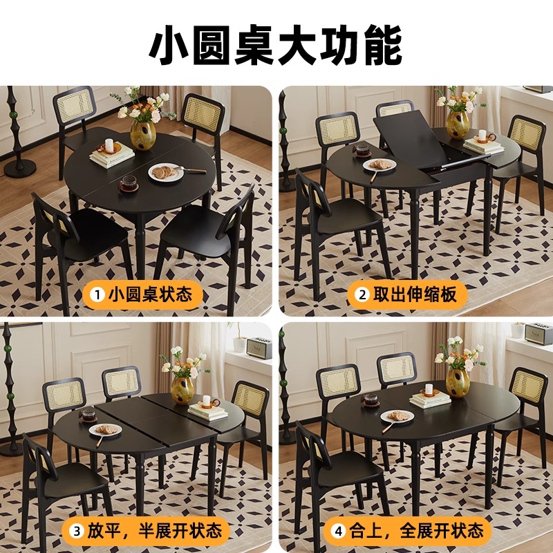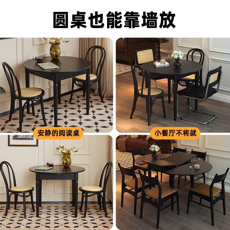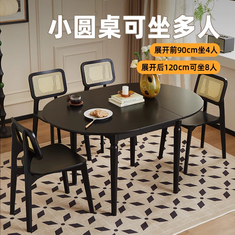 法式中古风复古全实木伸缩餐桌折叠椭圆形小户型家用桌子小型饭桌