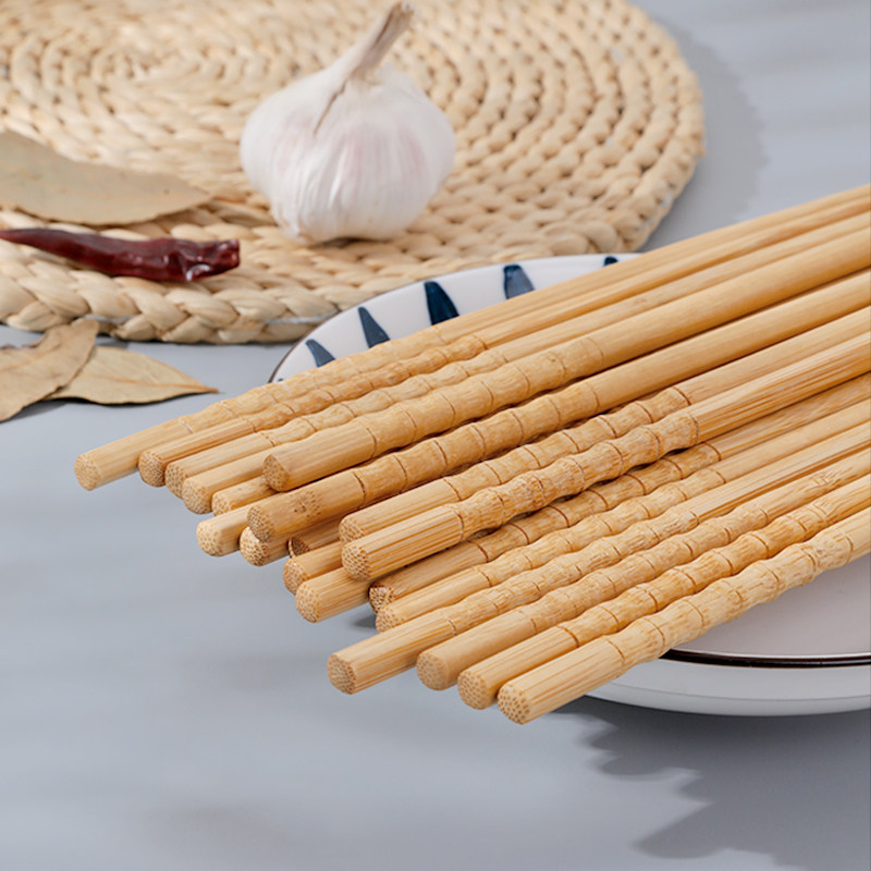 10双天然竹筷子家用家庭木筷子快子无漆无蜡防霉防滑高档雕刻竹筷