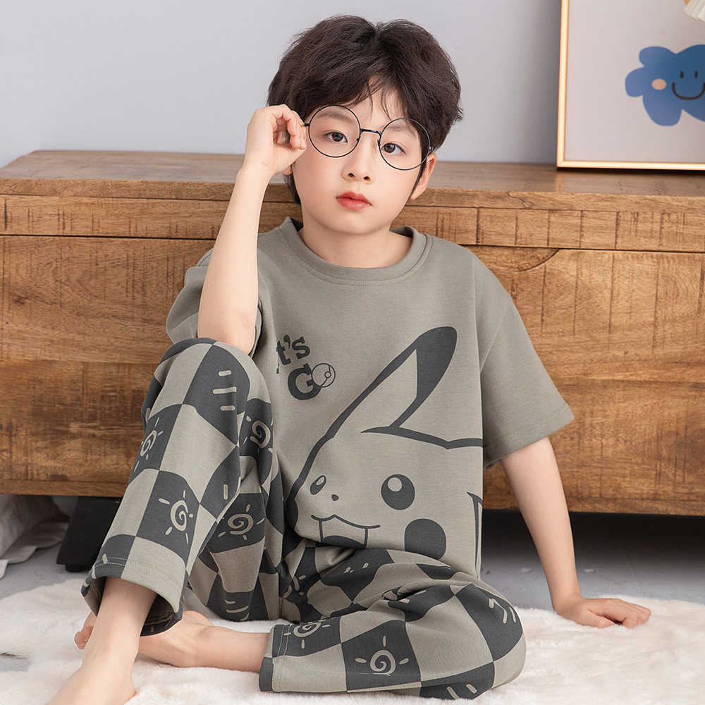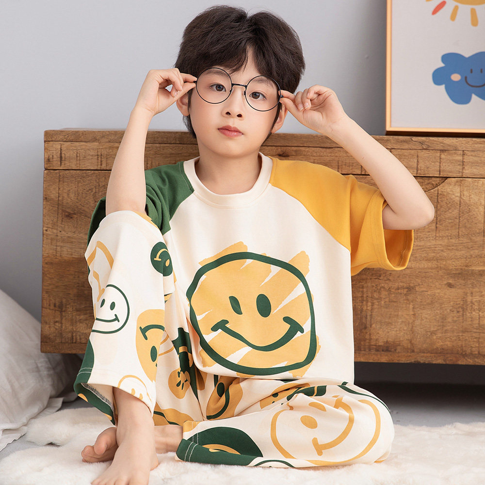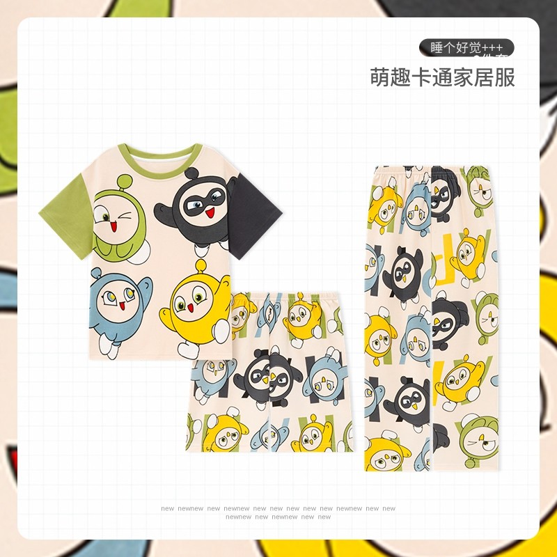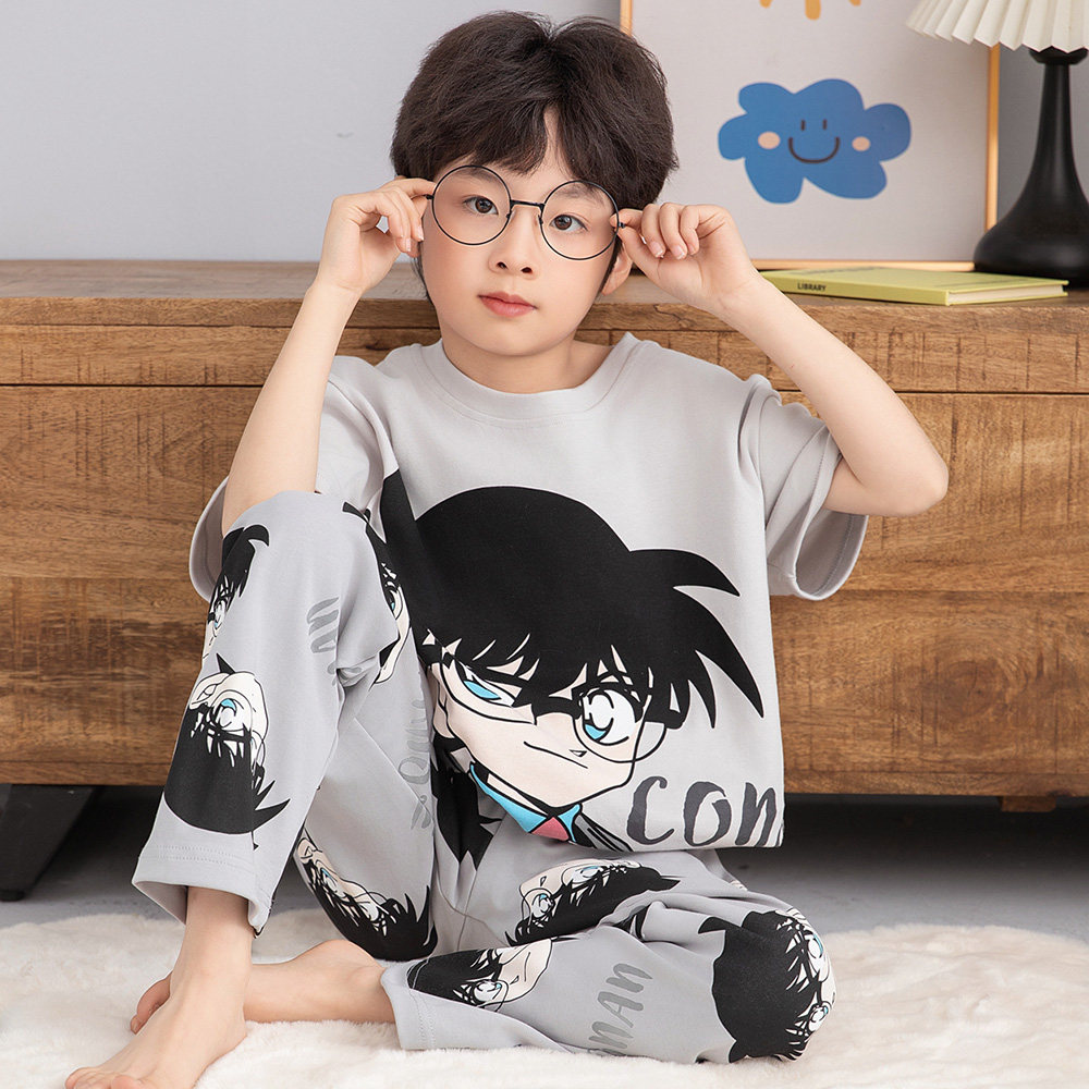 2025儿童睡衣男童短袖长裤纯棉夏季中大童男孩家居服套装短裤小新