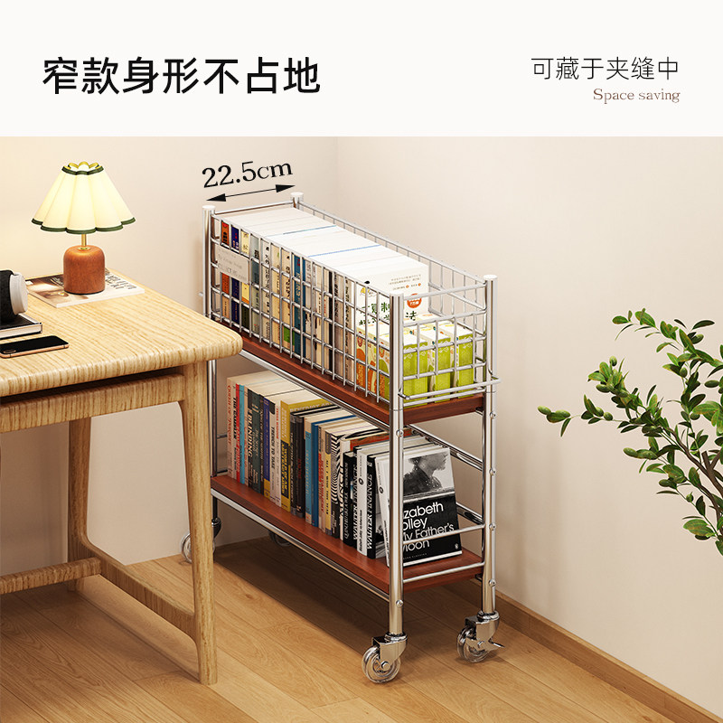 a生落地书架中古风置物架小推车