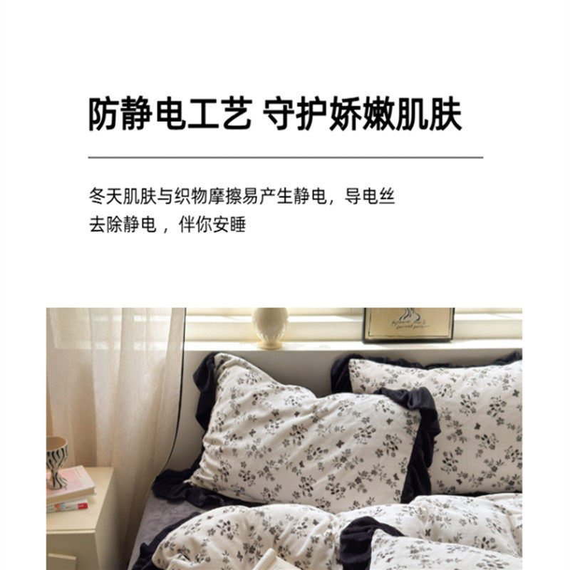 赫本风加厚牛奶绒四件套花边款公主法兰珊瑚绒保暖冬被套床笠单品