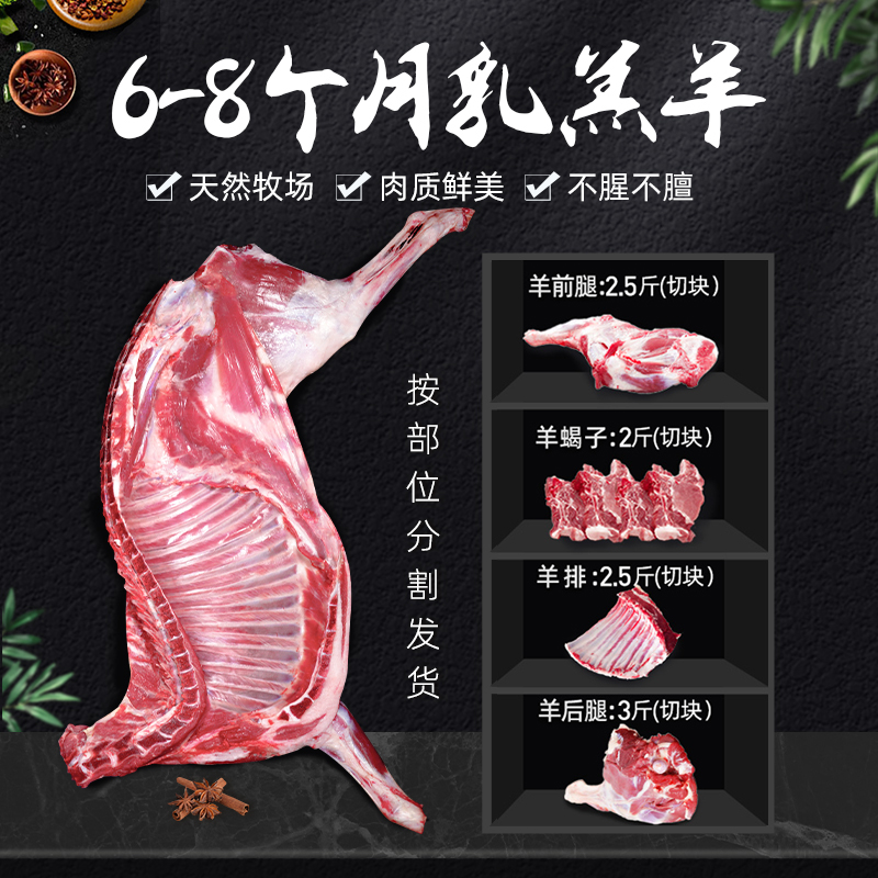 新鲜羊肉半只羊10斤手抓羊肉生鲜羊后腿羔羊排羊蝎子火锅年货礼盒