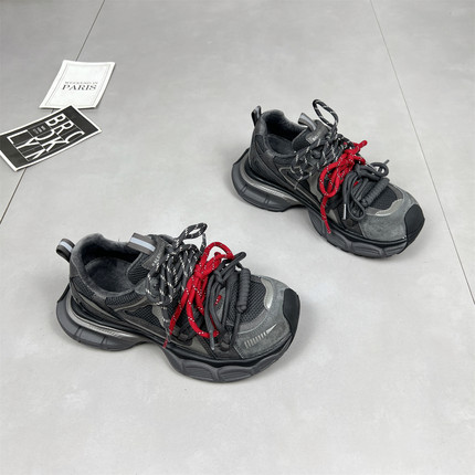 真皮小怪兽老爹鞋女2025冬季新款加绒保暖厚底时尚百搭运动休闲鞋